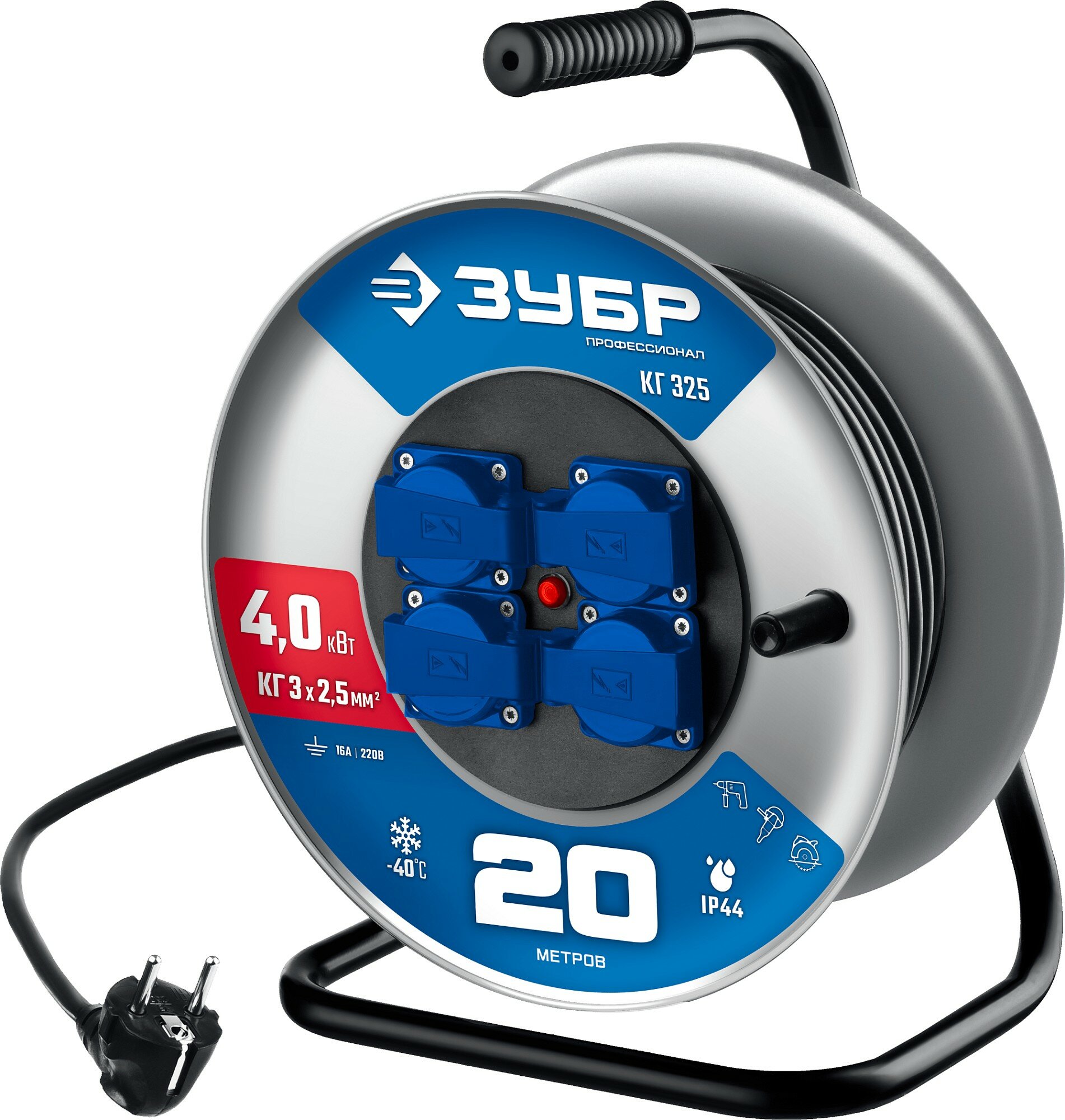 ЗУБР КГ 325 удлинитель на катушке, 20 м, 4000 Вт, 4 гнезда, IP44, КГ 3х2,5 кв мм, ЗУБР Профессионал, ( 55079-20 )