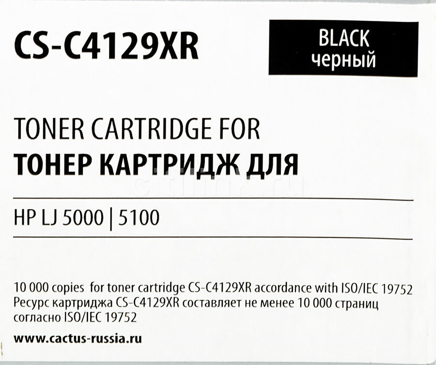 Картридж для лазерных принтеров CACTUS CS-C4129X, черный, ресурс 10000 страниц
