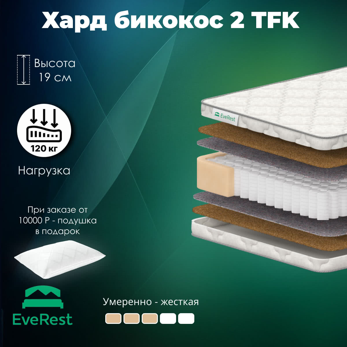 Матрас Everest Рестфом Бикокос 20 TFK - жесткость средняя, пружинный, независимый пружинный блок ТФК, с кокосом, чехол жаккард 145х200