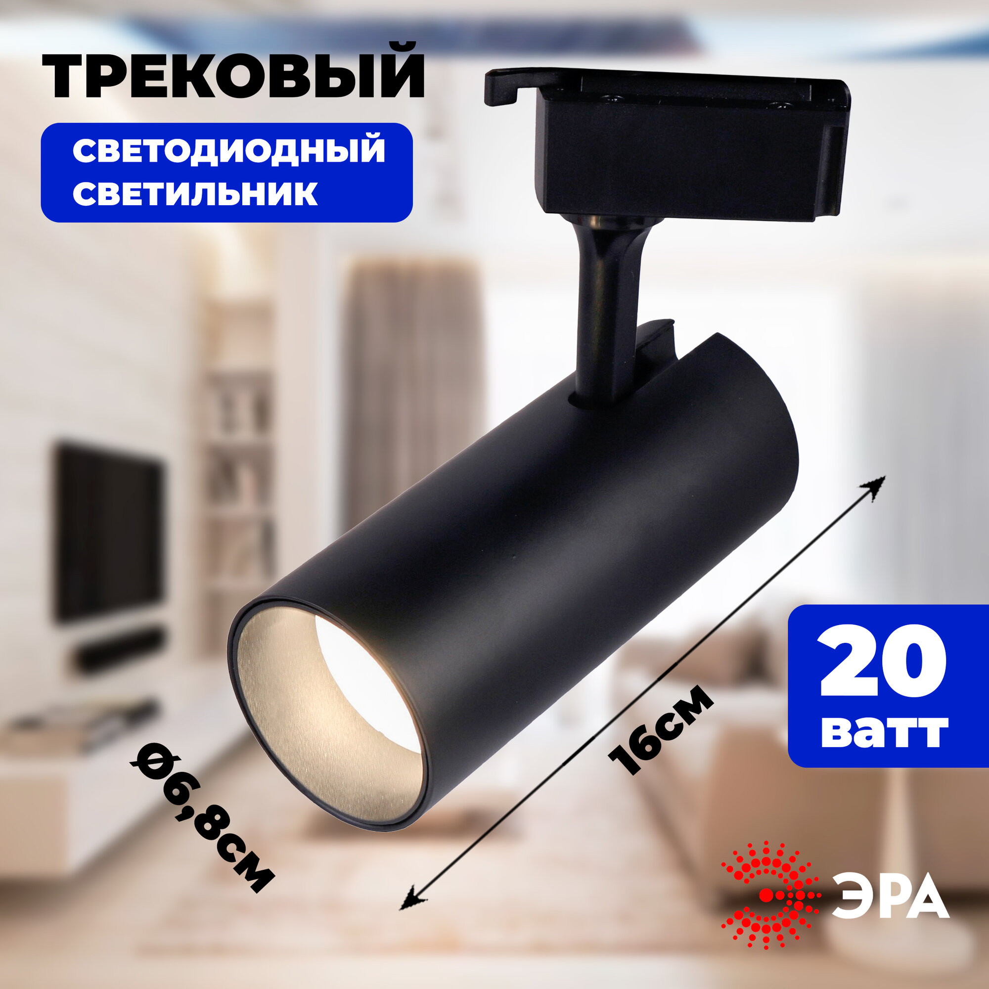 Купить Светильник трековый однофазный ЭРА TR5-20 COB BK светодиодный 20Вт 4000К 1400Лм черный арт. Б0049053 (1 шт.)