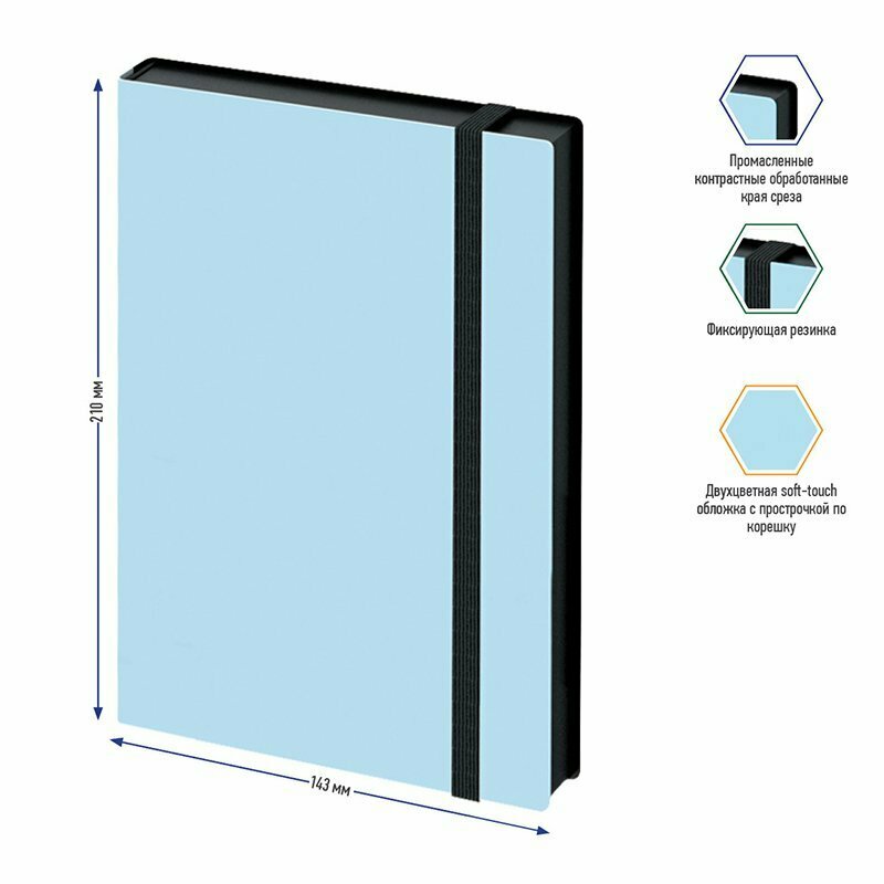 Ежедневник недатированный A5 136 листов, кожзам, Berlingo "Instinct", черный/аквамарин, с резинкой