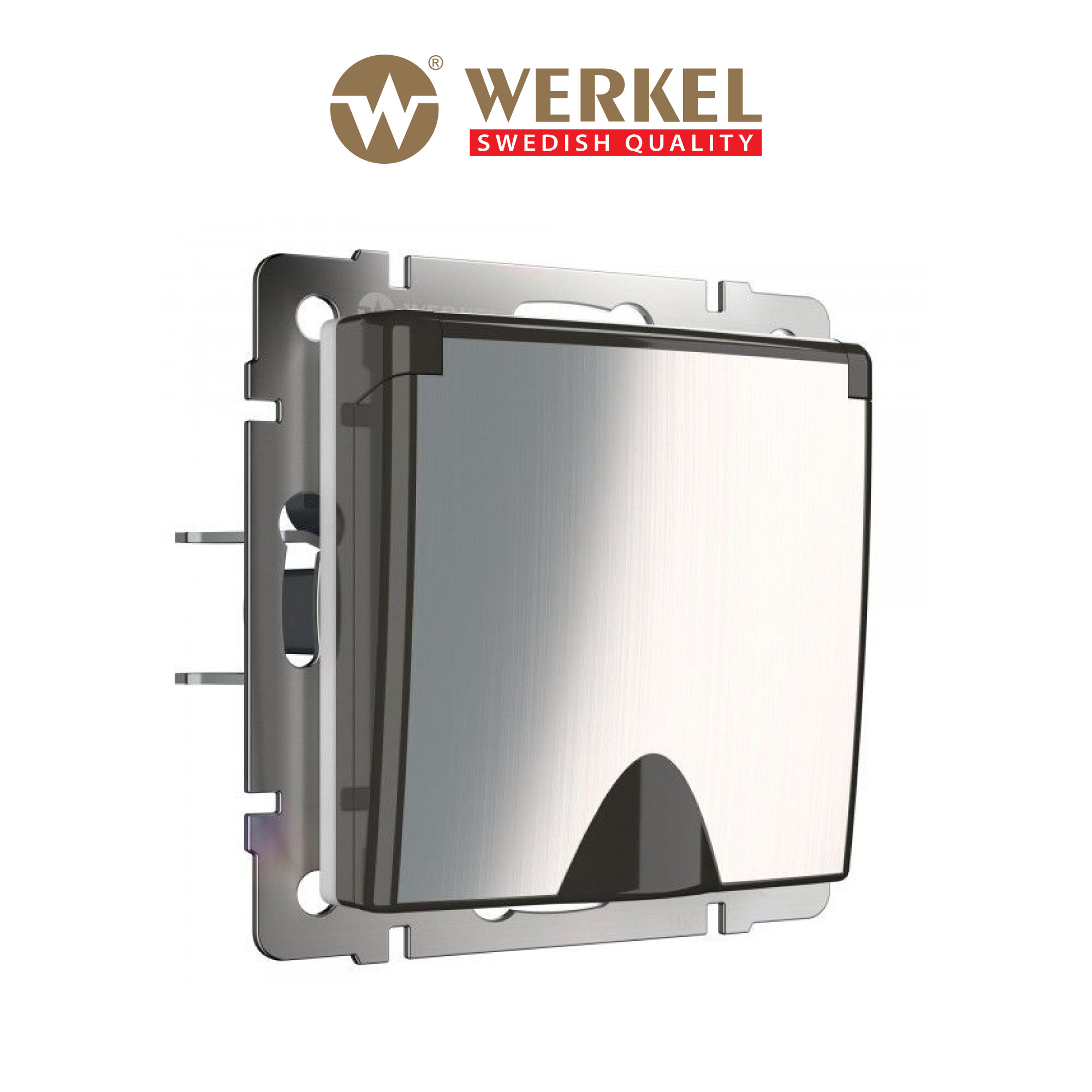 Розетка влагозащ. с зазем. с защит. крышкой и шторками Werkel W1171202 глянцевый никель IP44
