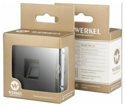 Розетка встраиваемая Werkel W1171264 с заземлением с крышкой и шторкой влагозащищенная цвет графит матовый