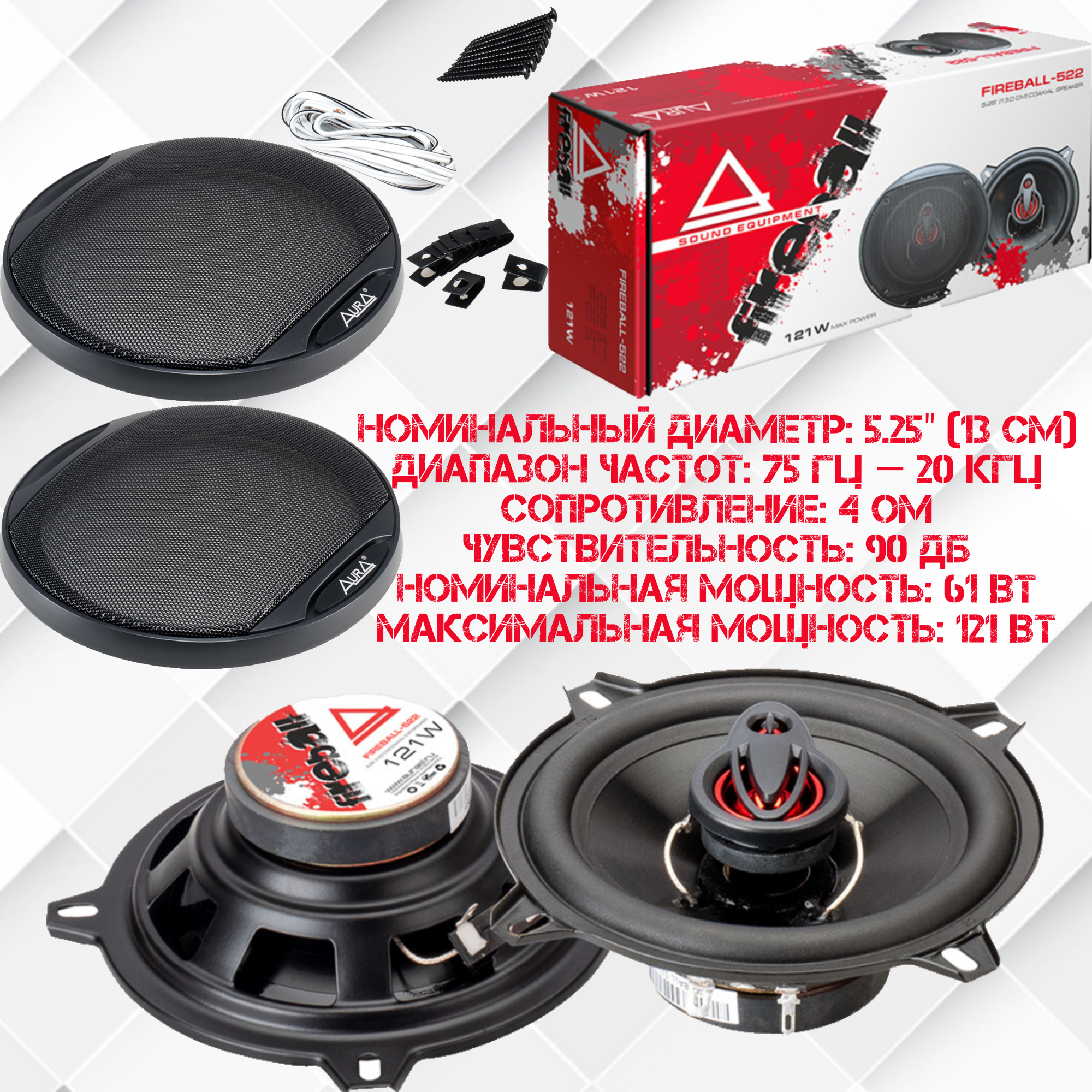 Aura Fireball-522 2-х полосная коаксиальная акустика 13 см (пара) интересное: