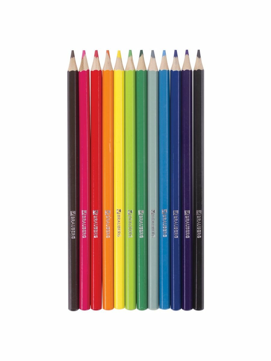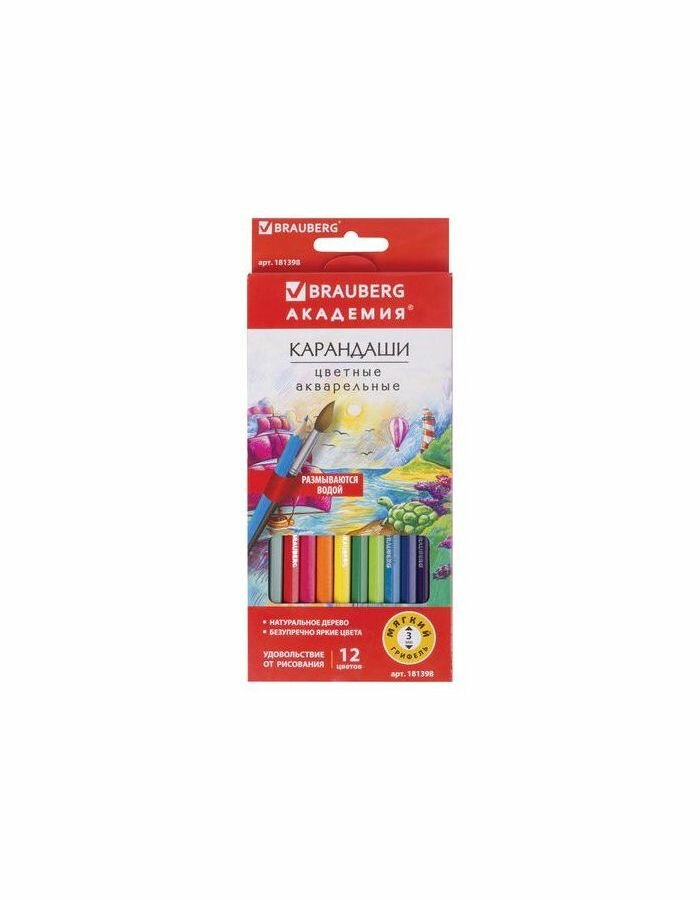 Карандаши цветные Brauberg акварельные "Академия", 12 цветов, шестигранные (181398)
