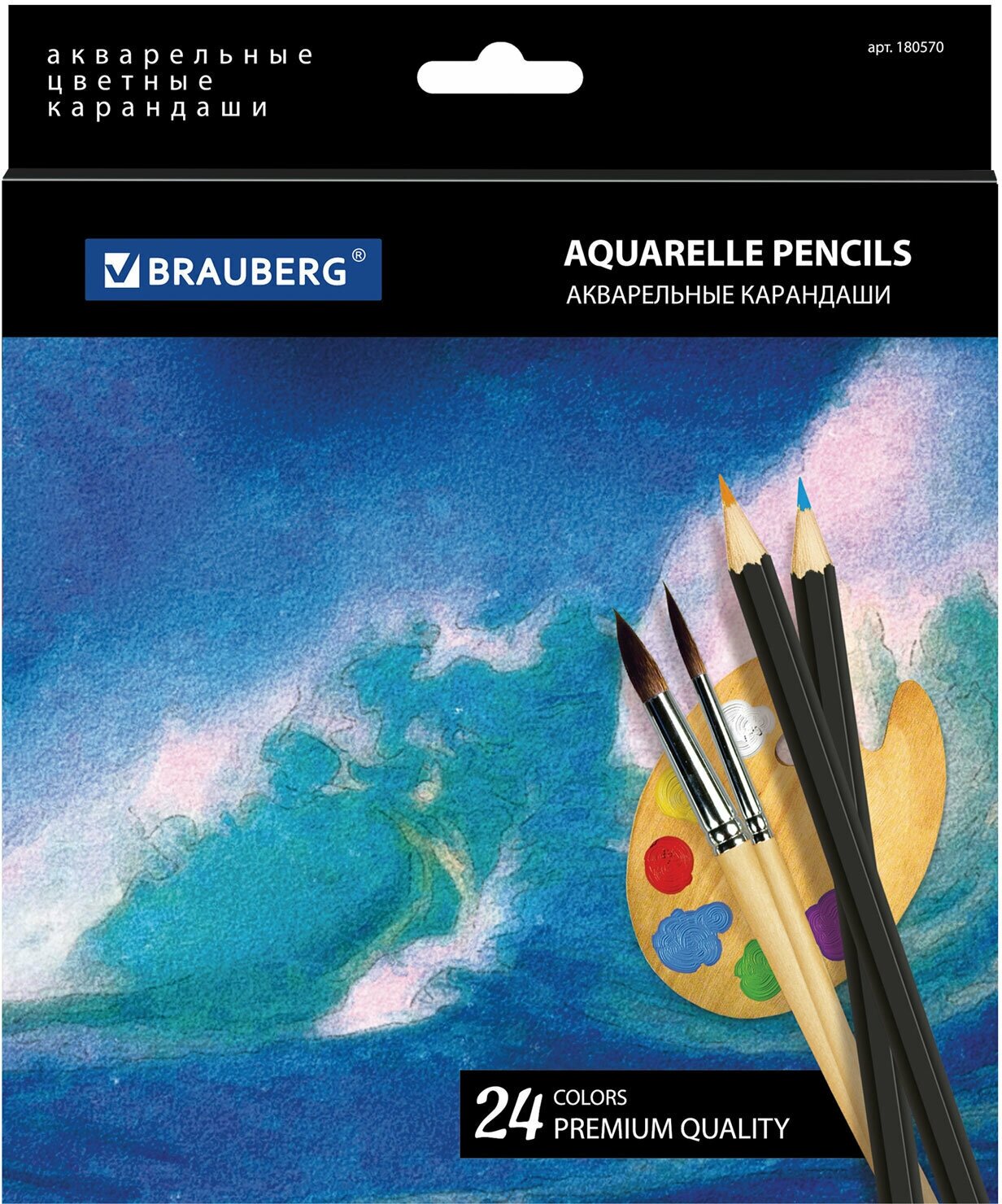 Карандаши акварельные цветные художественные для рисования "Академия", набор из 12 цветов, заточенные, шестигранные, Brauberg, грифель 3 мм, натуральное дерево, 181398