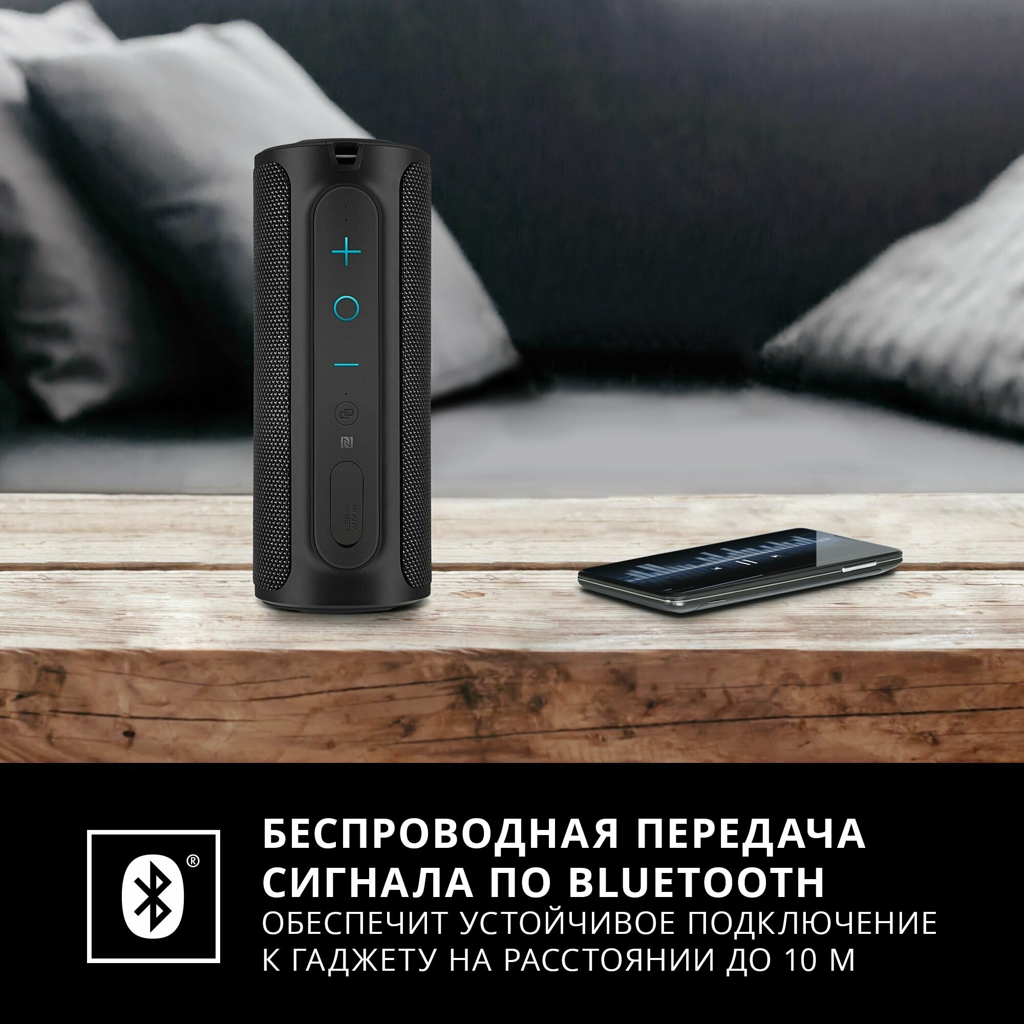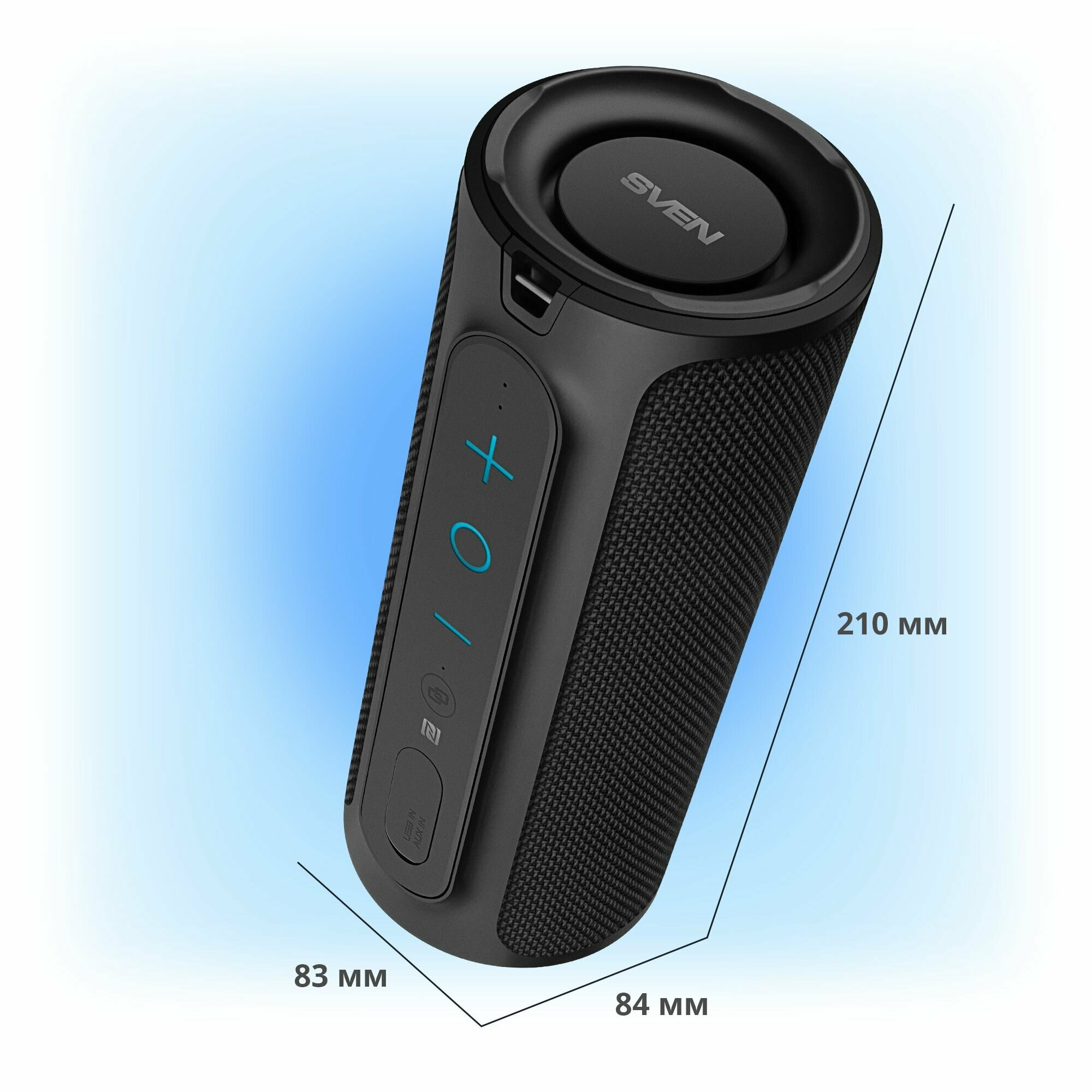 Портативная беспроводная Bluetooth колонка SVEN PS-300, черный, мощность 2x12 Вт (RMS), влагозащищённая (IPx7), TWS, встроенный аккумулятор