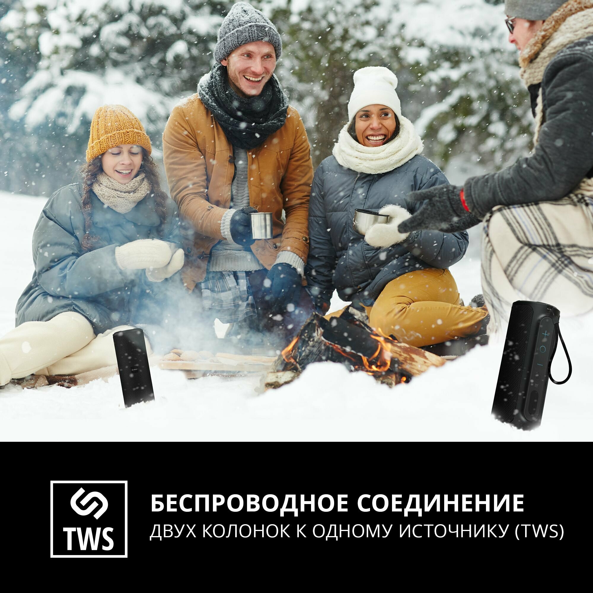 SVEN АС PS-300, черный (24 Вт, Waterproof (IPx7), TWS, Bluetooth, 2000мА*ч) SV-021221