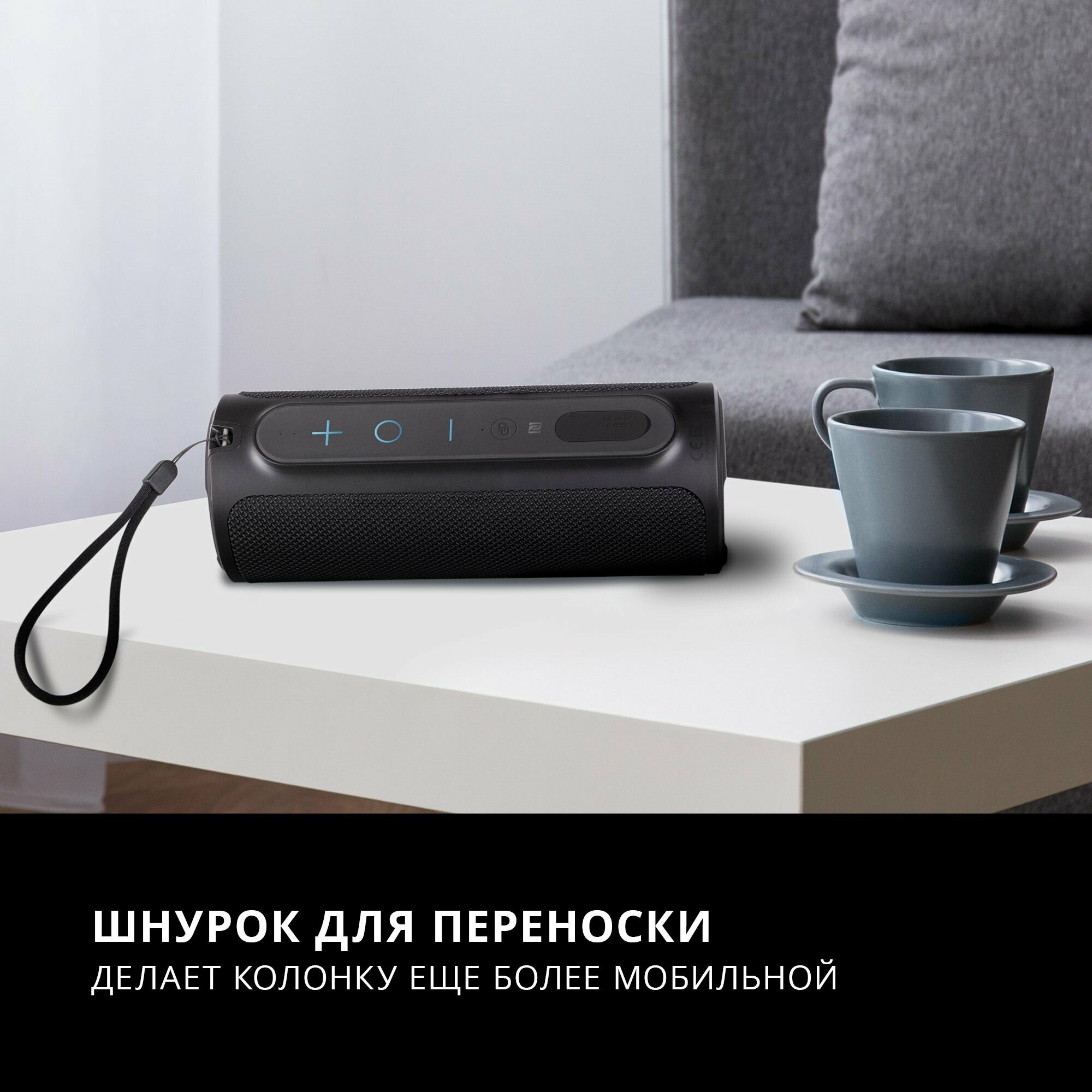 Портативная колонка TFN Quadro, 3Вт, Bluetooth 5.0, microSD, microUSB, IPX6, 1500мАч, черная