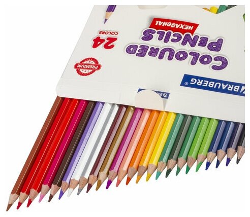 Карандаши цветные Brauberg Premium, 24 цвета, шестигранные, грифель мягкий, 3,3 мм (181658)