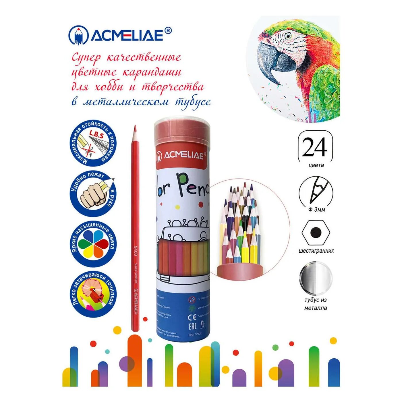 Карандаши цветные ACMELIAE 24 цвета в футляре-тубусе интересное: