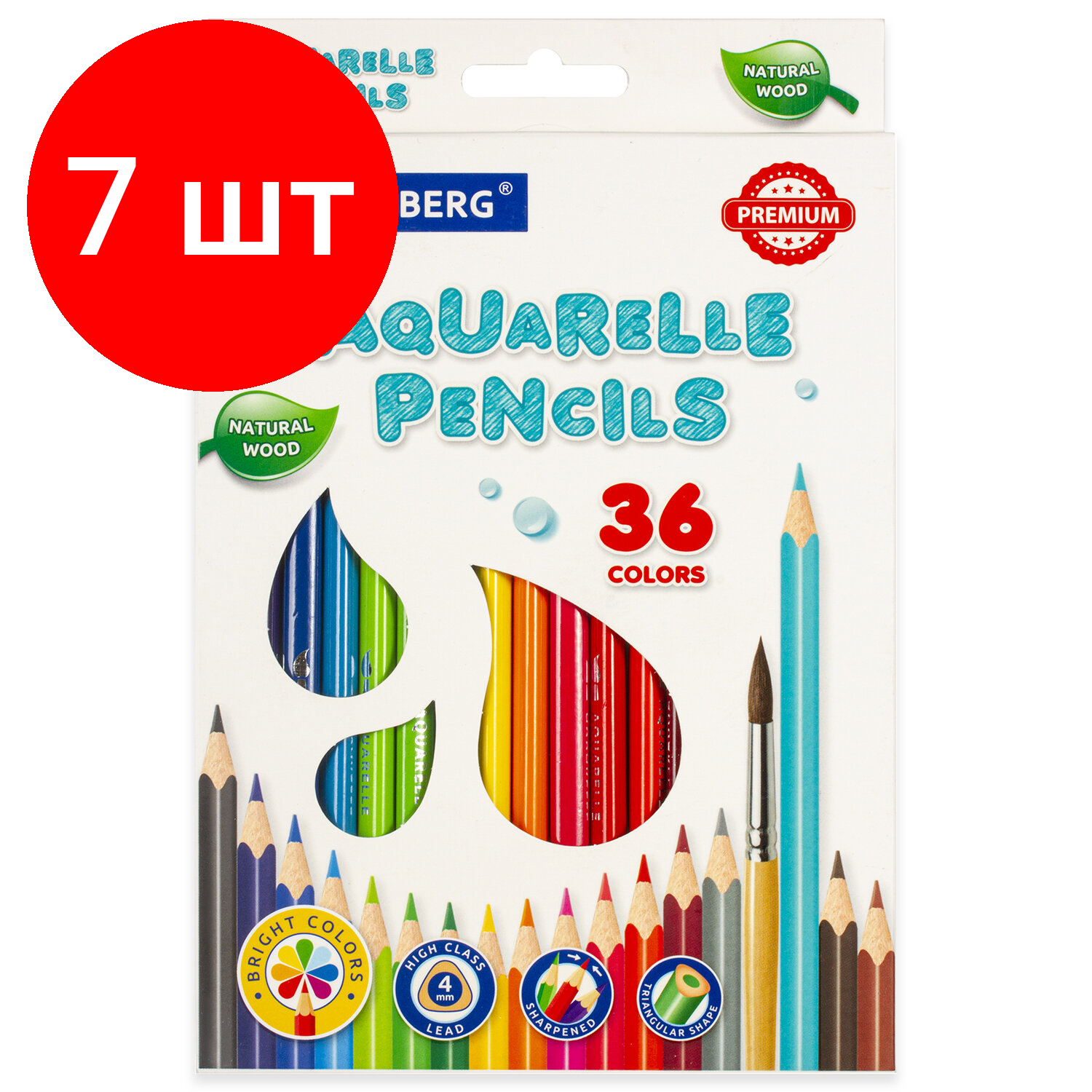 Купить Комплект 7 шт, Карандаши цветные акварельные BRAUBERG PREMIUM AQUARELLE, 36 цветов, грифель мягкий 4 мм, 181674