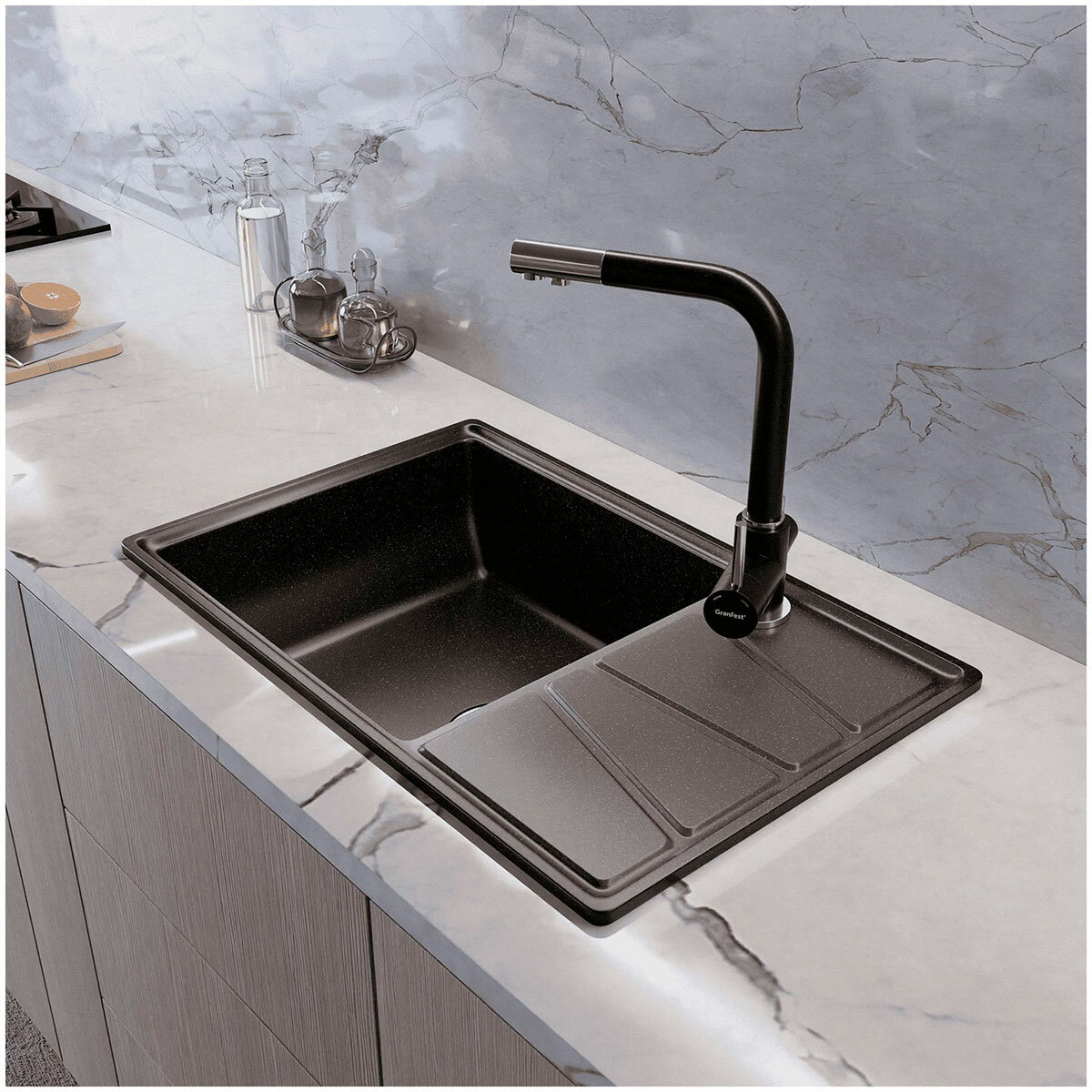 Мойка кухонная GranFest VERTEX GF-V-780L чаша с крылом 780*500мм графит, мрамор