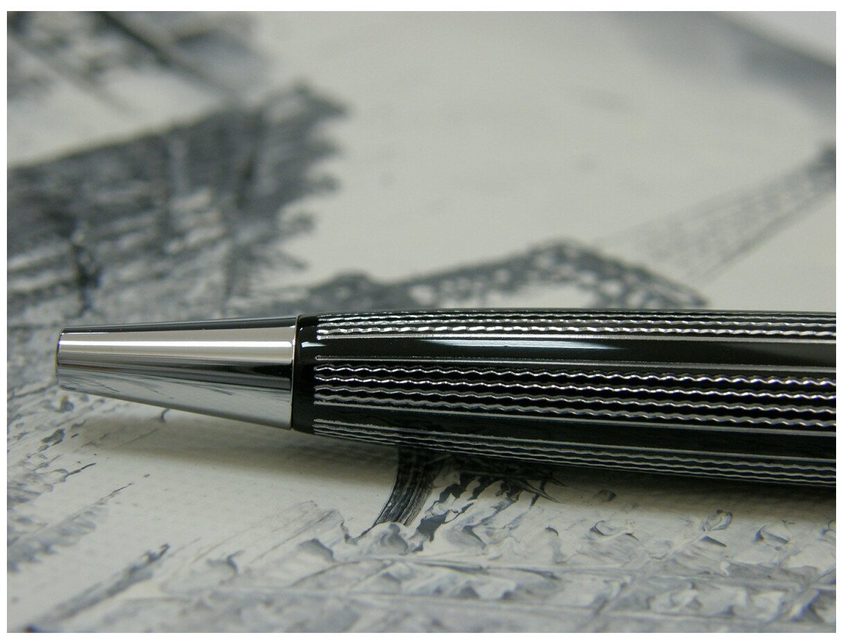 РучкашариковаяPIERRE CARDINTRESOR,корпуслатуньилак,покрытиеметалл,отделка латунь и хром, сгравировкой, чернила синие, чёрная