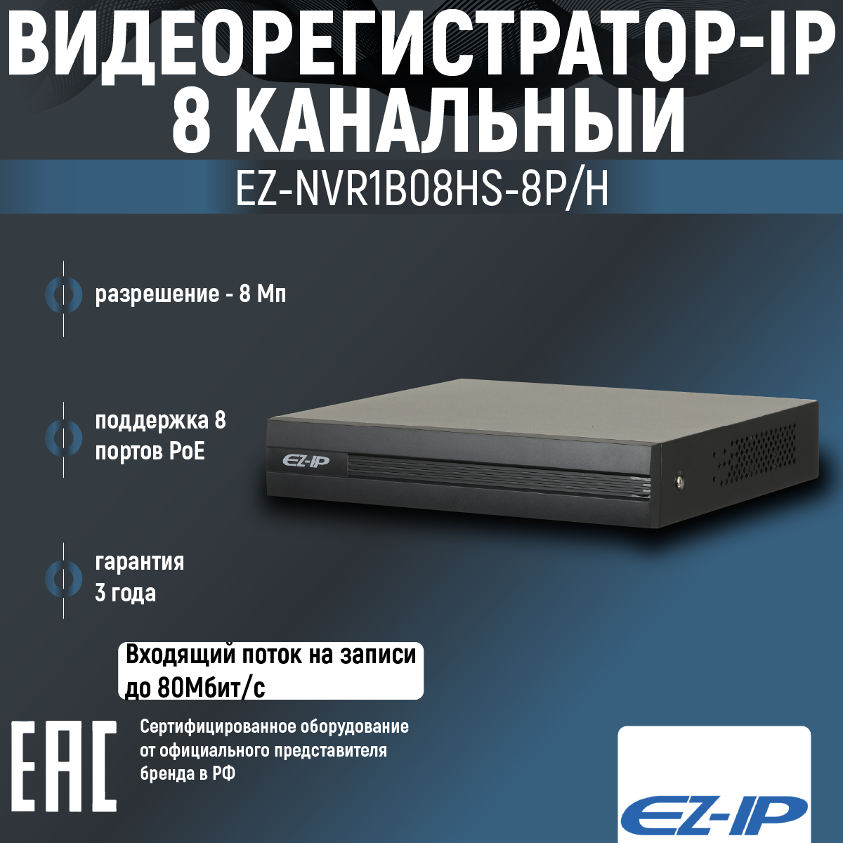 Видеорегистратор EZ-NVR1B08HS-8P/H, 8-ми канальный