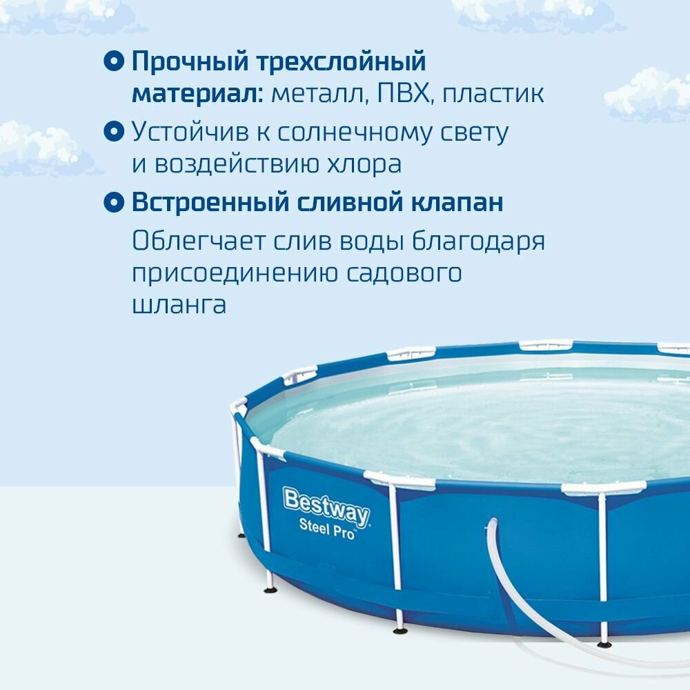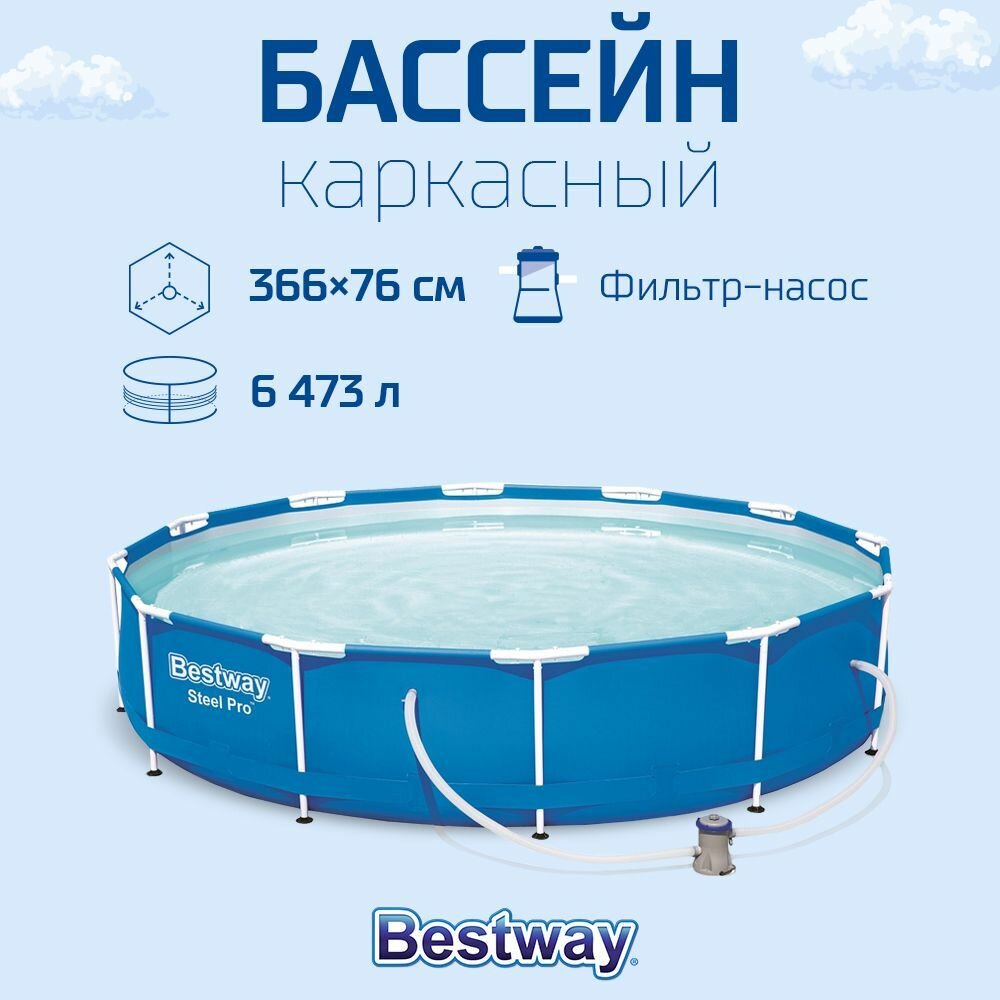 Каркасный бассейн Bestway Steel Pro 56679, 305х76 см (фильтр)
