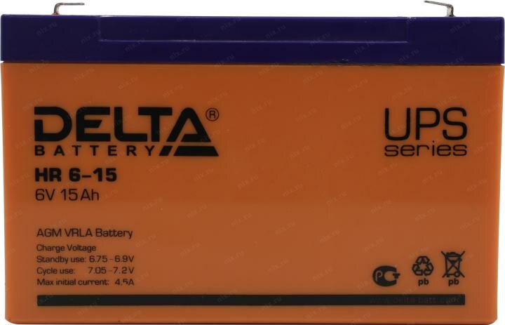 Аккумуляторная батарея Delta HR 6-15 6В 15Ач AGM для ИБП,UPS, аккумулятор для детского электромобиля