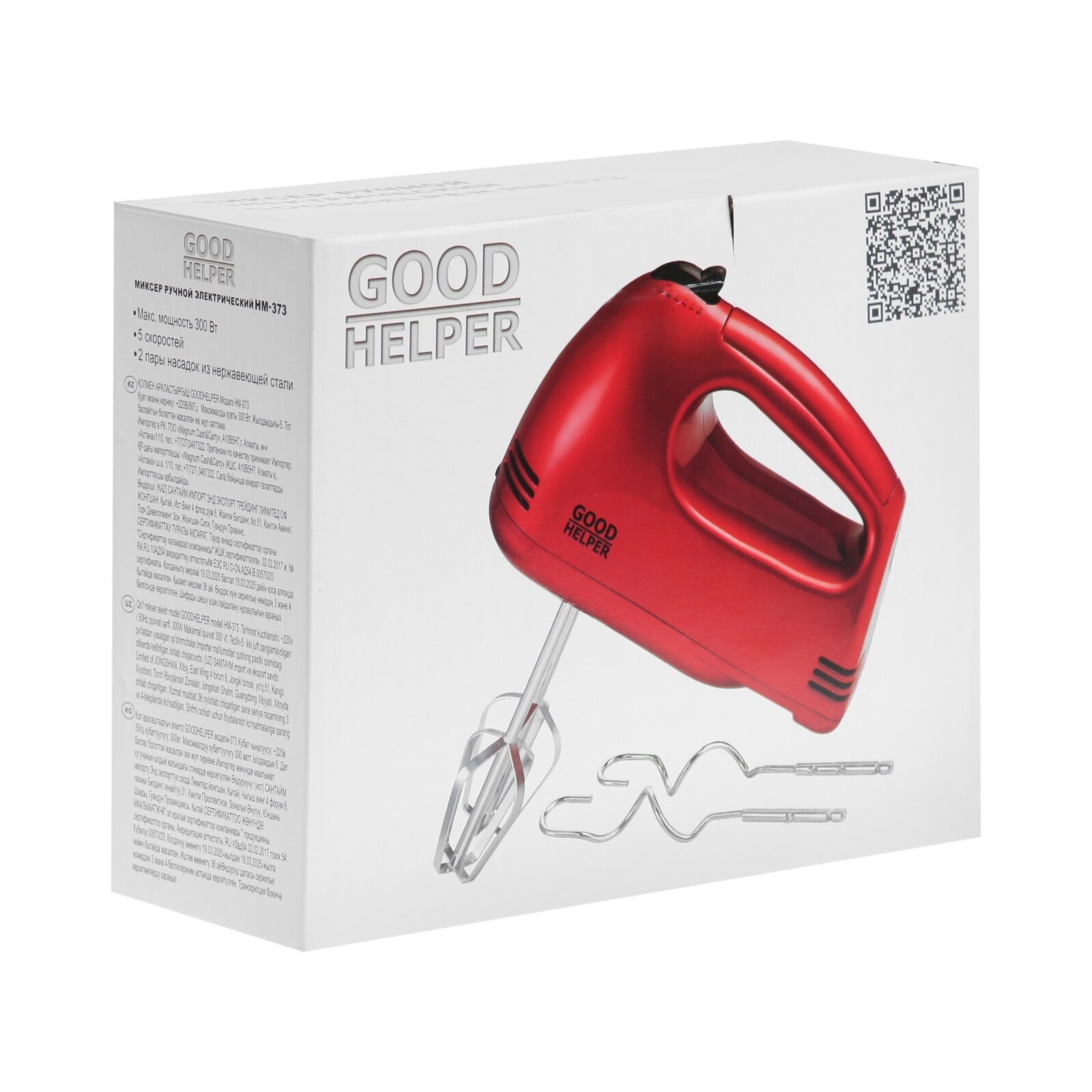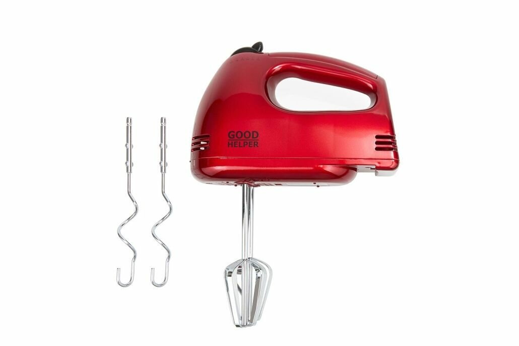 Миксер GOODHELPER HM-373, ручной, 300 Вт, 5 скоростей, 2 насадки, красный интересное:
