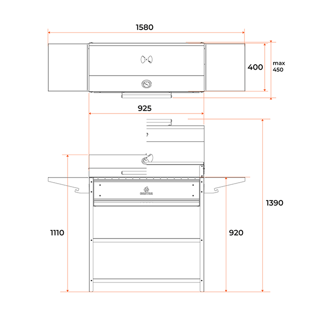 Гриль - мангал стационарный, с термометром, с зольником, с нержавеющей накладкой, с двумя боковыми и двумя нижними полками GRATAR Professional Optima BBQ POBn 3001
