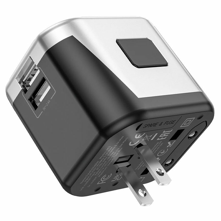 Зарядное устройство для всех стран мира Hoco AC5 Travel Companion, 2USB+1розетка, Черный+Серебристый