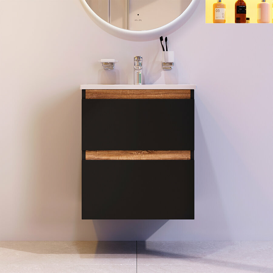 Smart" 60 Тумба подвесная, цвет дуб балтийский с раковиной MODUO 60 SLIM SRT0106DB ТМ "AQWELLA
