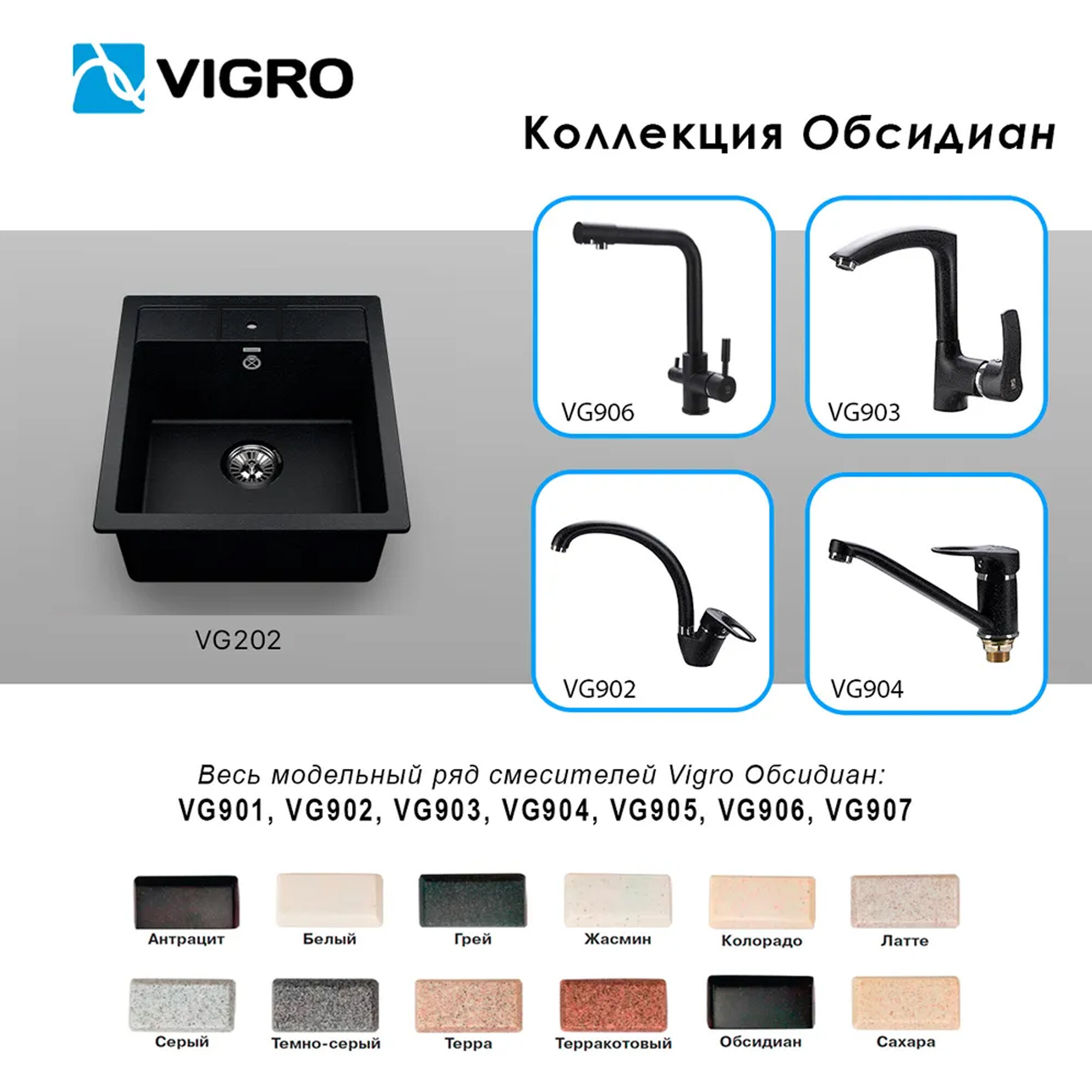 Мойка кухонная VIGRO VG202 обсидиан (460*500*195)