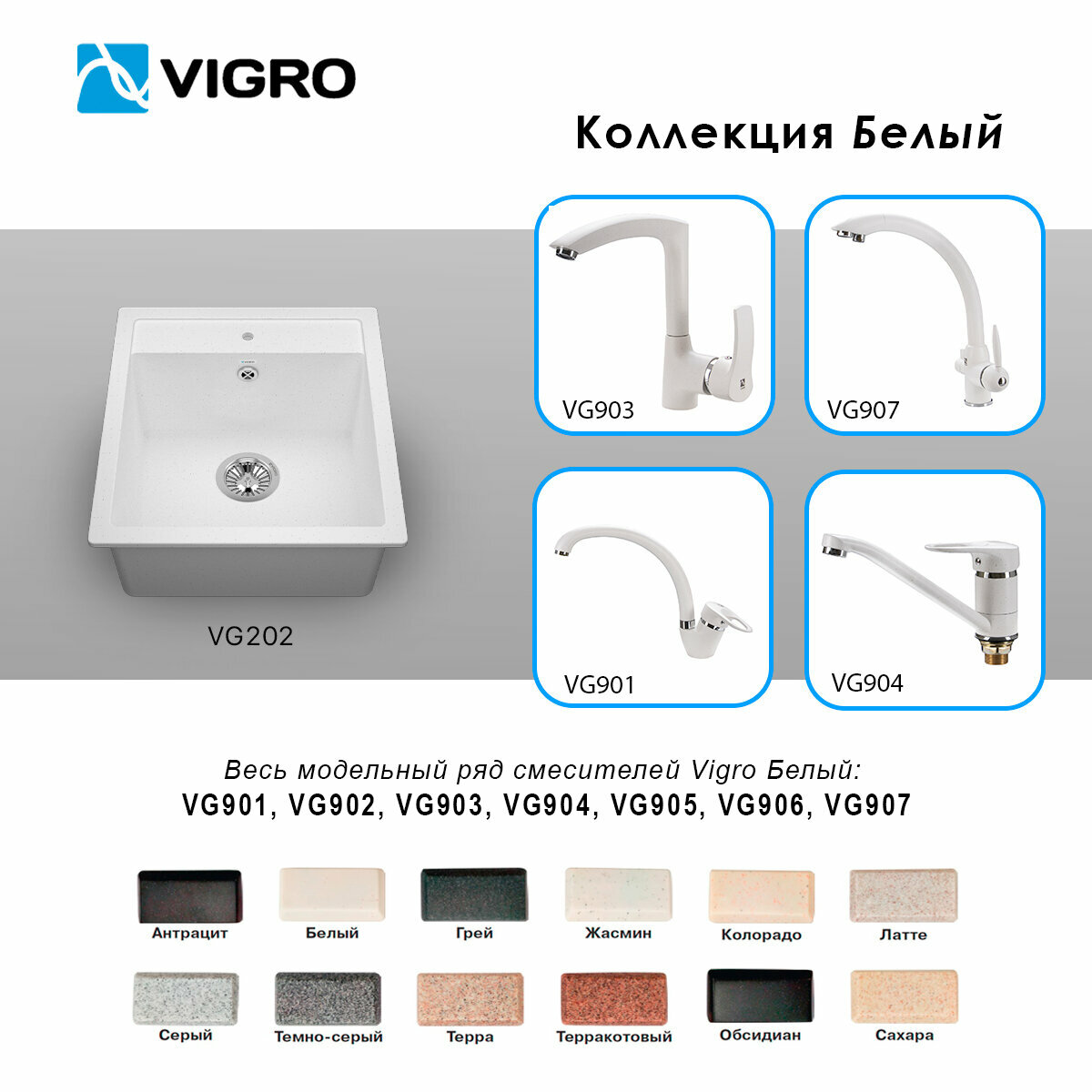 Купить Мойка для кухни VIGRO врезная из искусственного камня (46*50 см), белый