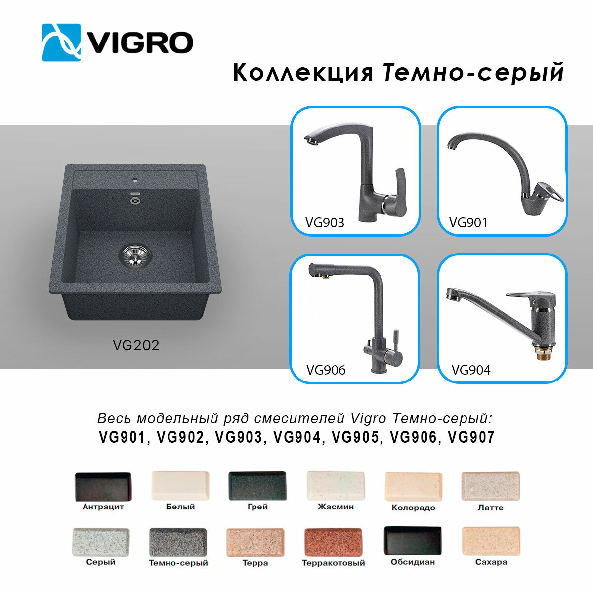 Купить Мойка для кухни VIGRO врезная из искусственного камня (46*50 см), темно-серый