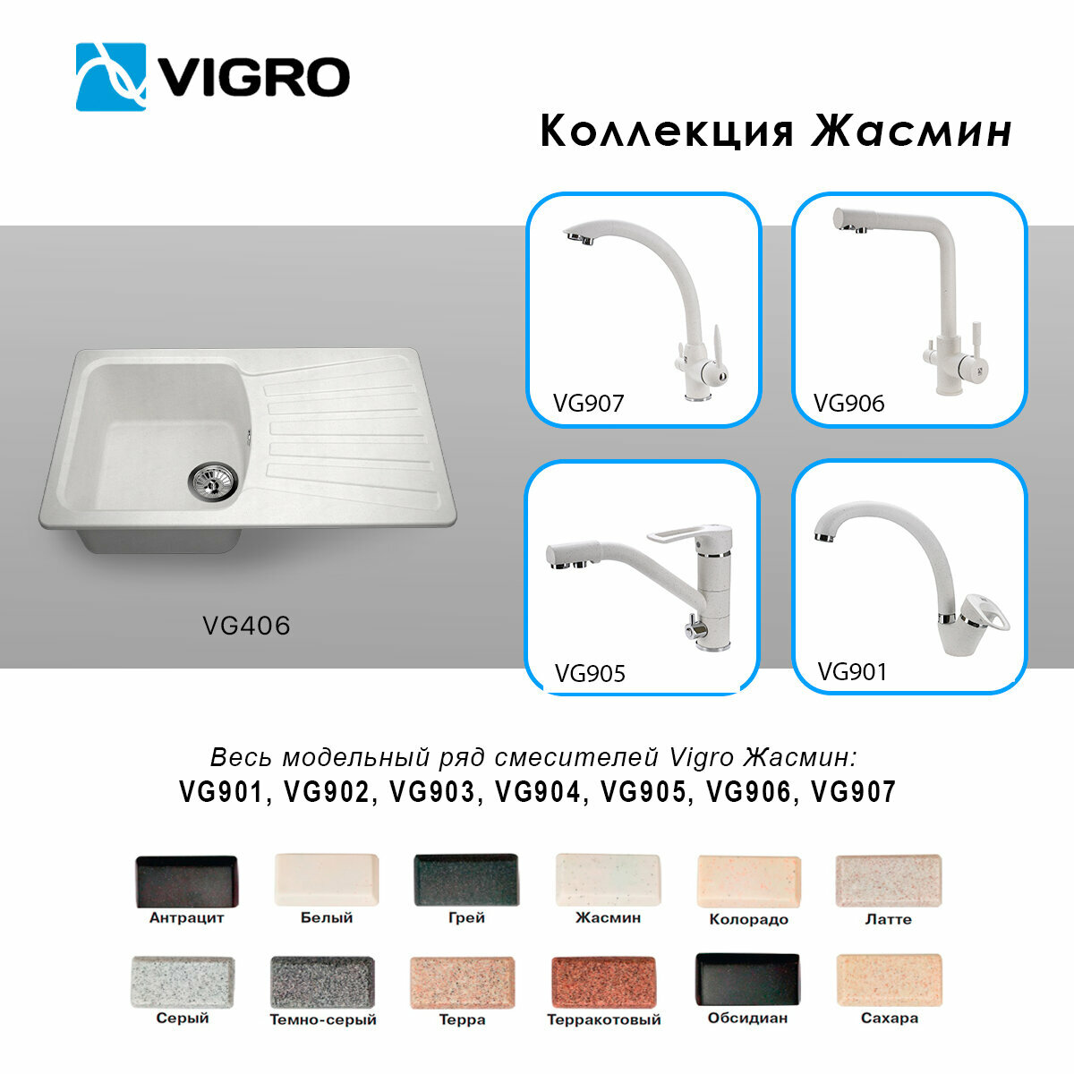 СохранитьМойка кухонная врезная Vigro VG406 жасмин (800*494*205) интересное: