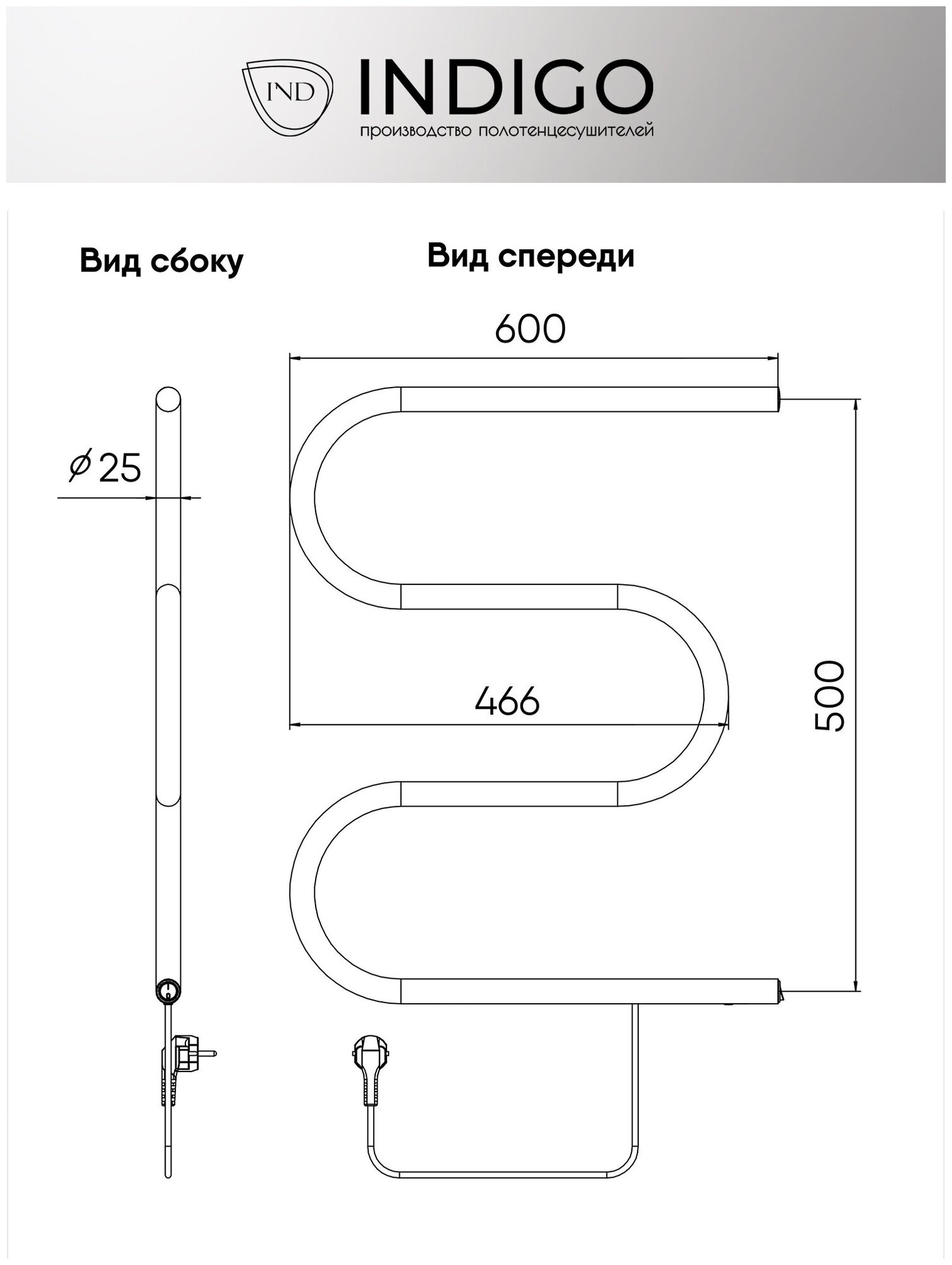 Полотенцесушитель M б/п (electro) 50/60 (кнопка, прям.провод, Полиров.) INDIGO