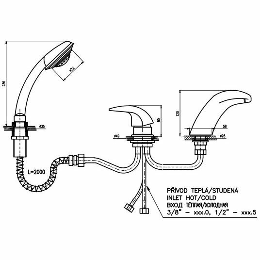 Rav Slezak Dunaj Смеситель для ванны на 3 отверстия переключатель в миксе D468.5Y душевой шланг с пружиной 2м цвет хром (D471.5Y)