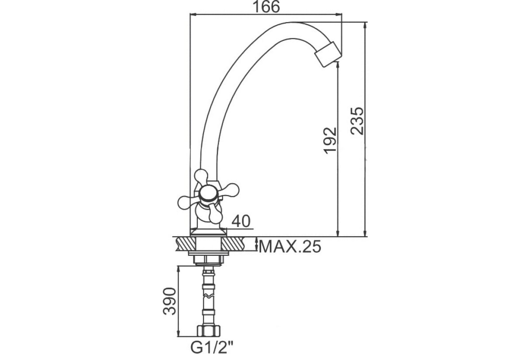 Смеситель для кухни L4908 с гайкой 1/2 м/к крест 13705/141509