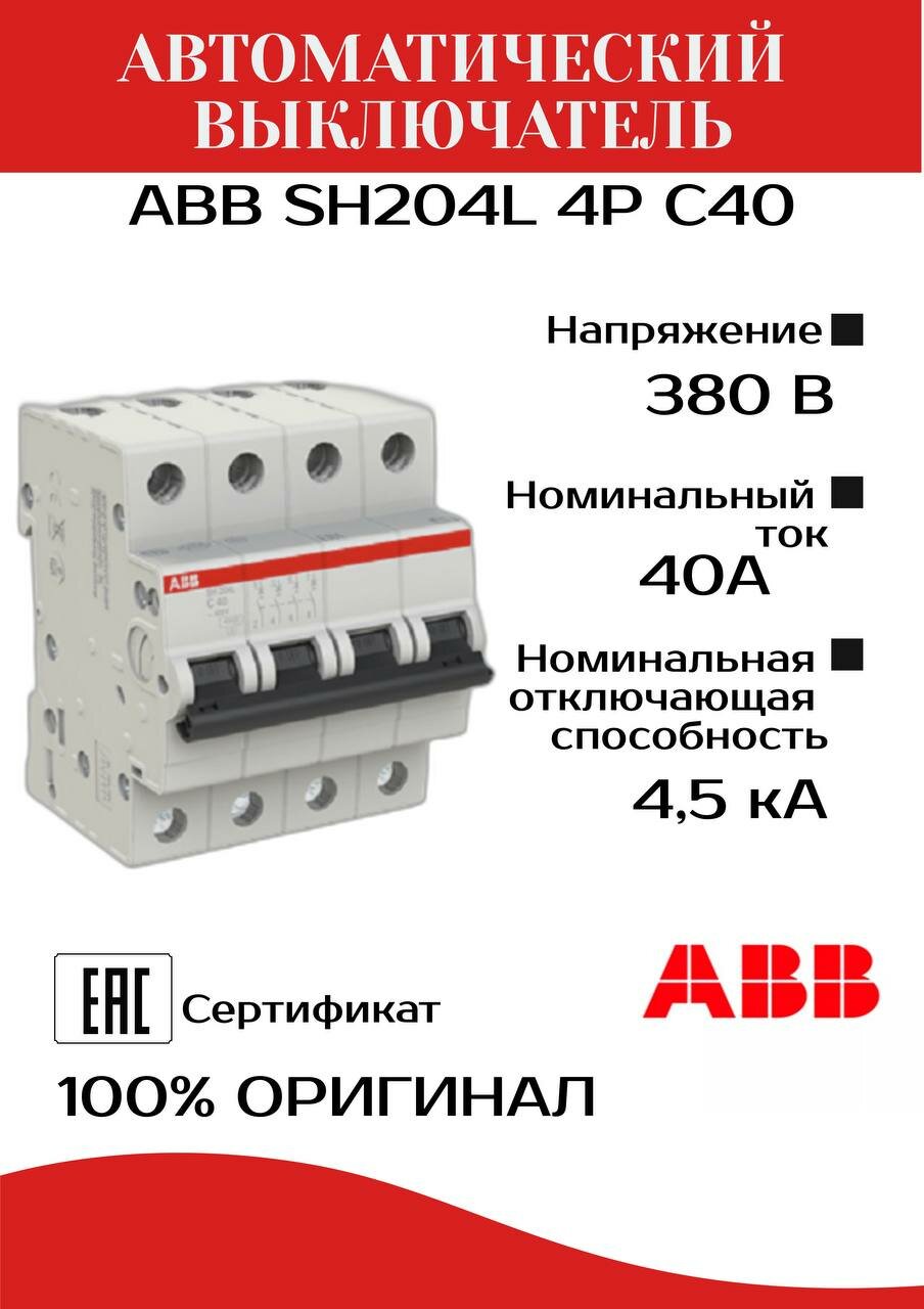 ABB Sh204l Автоматический выключатель 4P 40А 4,5kA 2CDS244001R0404 .