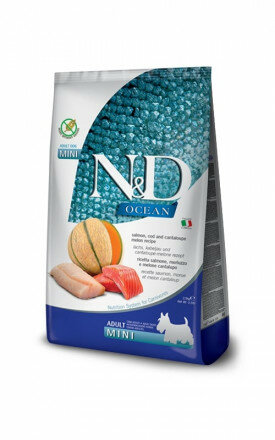 FARMINA DOG N&D OCEAN ADULT MINI SALMON, COD & CANTALOUPE MELON беззерновой для взрослых собак маленьких пород с лососем, треской и дыней (0,8 кг)