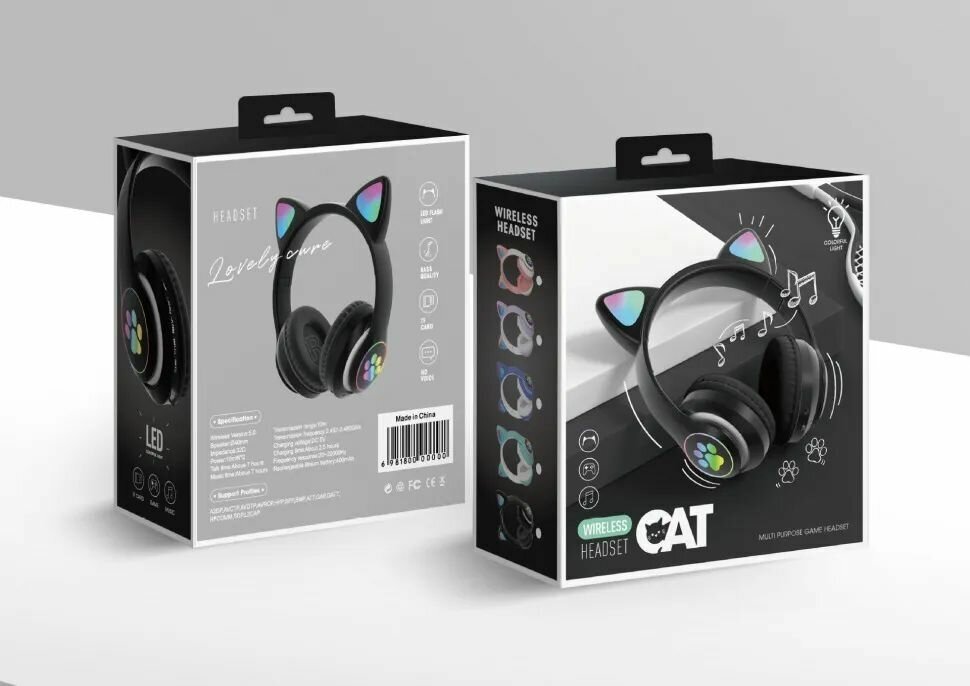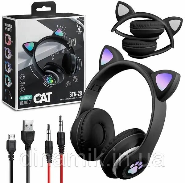 Беспроводные наушники "Кошачьи ушки", светящиеся, CAT STN-28 (черные)