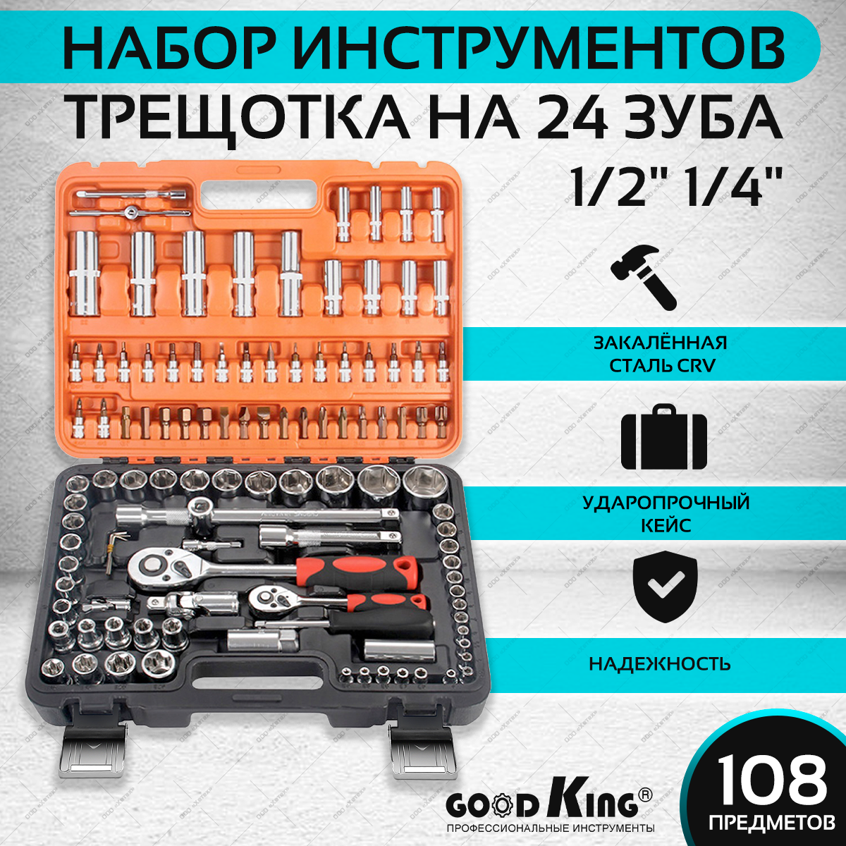 Купить Набор инструментов 108 предметов 1/4" 1/2" трещотка GOODKING tools для дома, для автомобиля