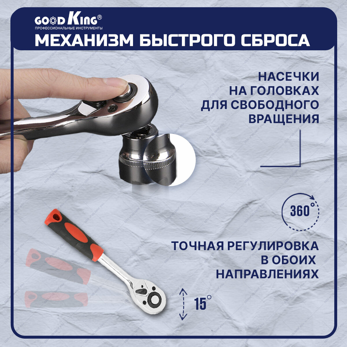 Набор инструментов 108 предметов 1/4" 1/2" трещотка GOODKING tools для дома, для автомобиля интересное: