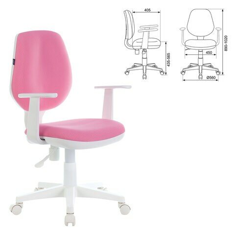 Кресло детское BRABIX "Fancy MG-201W", с подлокотниками, пластик белый, розовое, 532409, MG-201W_532409