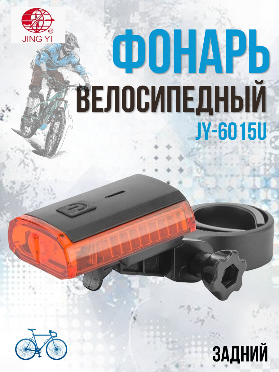 Фонарь задний JY-6015U, 3 светодиода, 1 режим, аккумулятор, цвет красный/чёрный