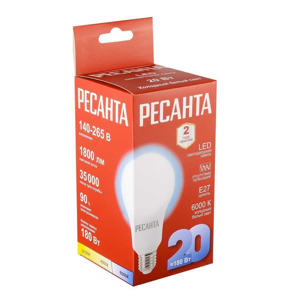 Светодиодная лампа Ресанта LL-R-A80-20W-230-6K-E27