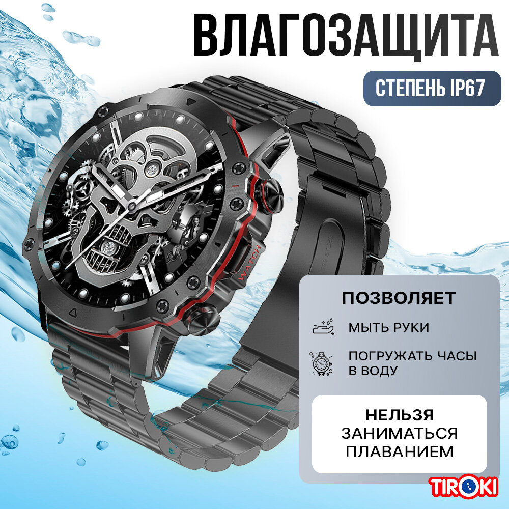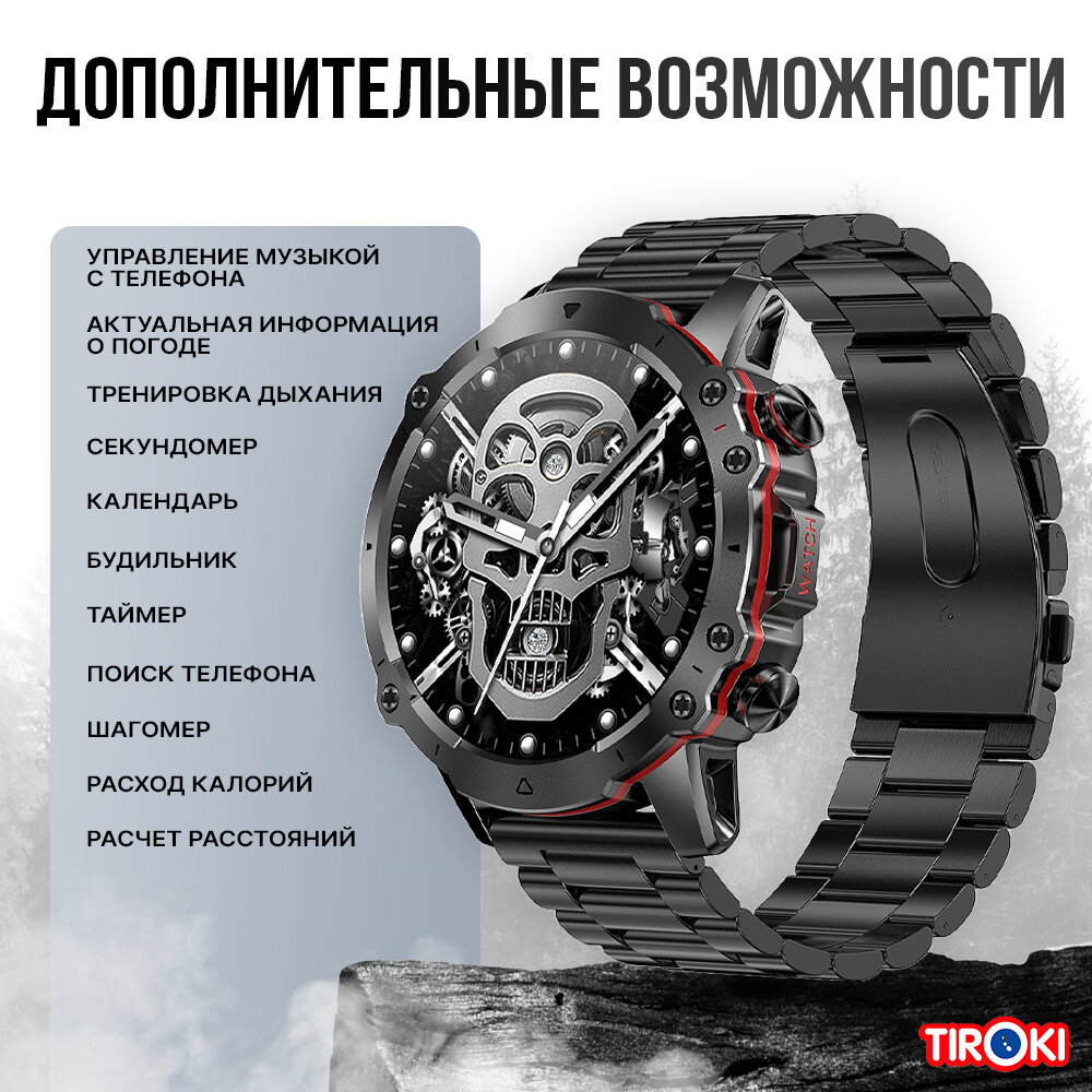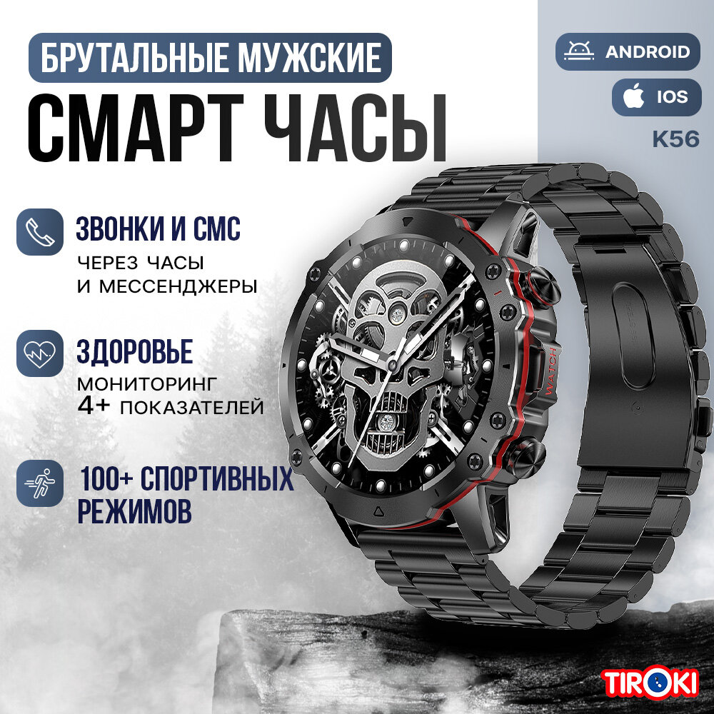 Смарт часы мужские спортивные Tiroki K56 черный металл / Умные часы наручные / Bluetooth Smart Watch с пульсометром, шагомером, счетчиком калорий