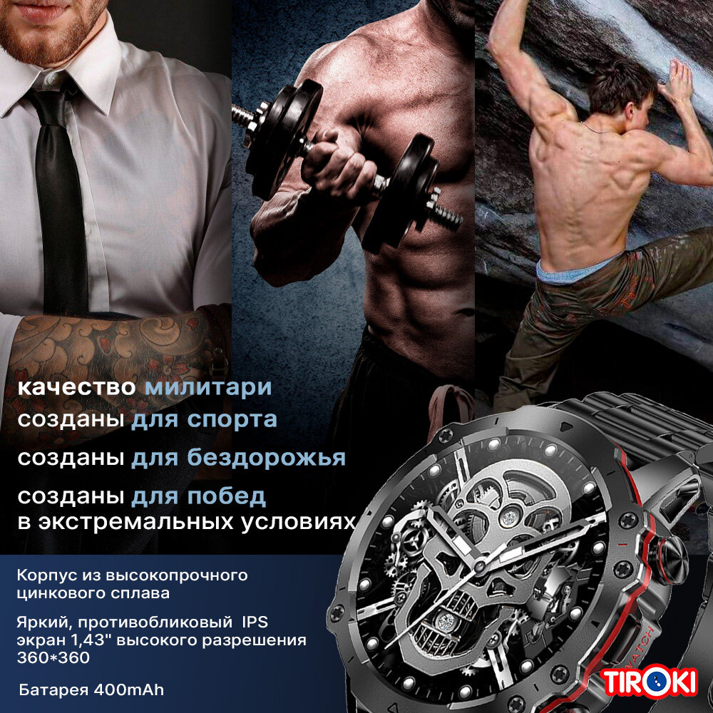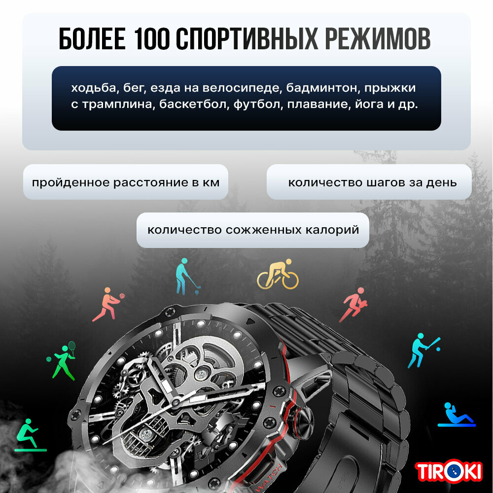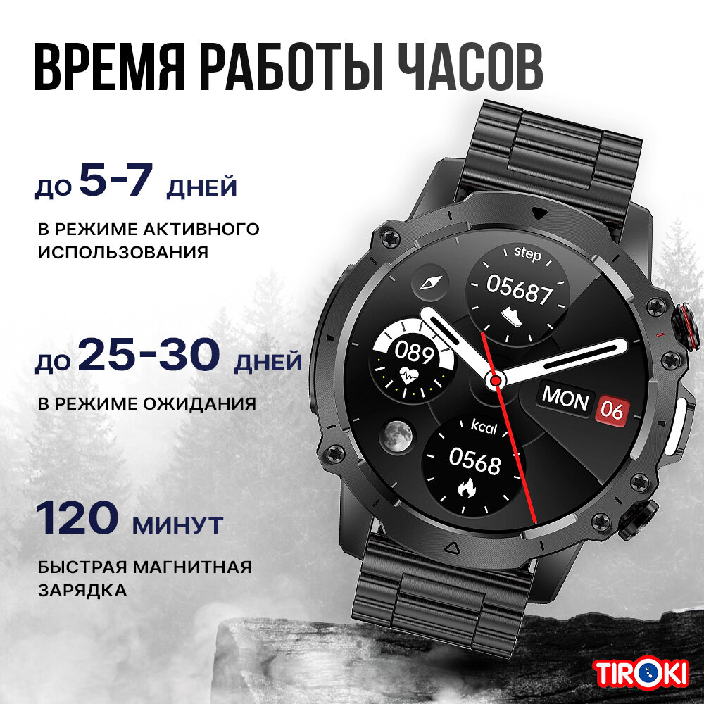 Смарт часы мужские спортивные Tiroki K56 черный металл / Умные часы наручные / Bluetooth Smart Watch / Мужские часы наручные / Смарт вотч с пульсометром, шагомером, счетчиком калорий