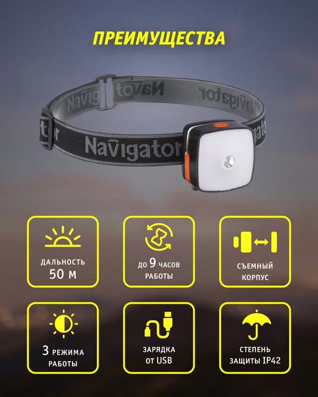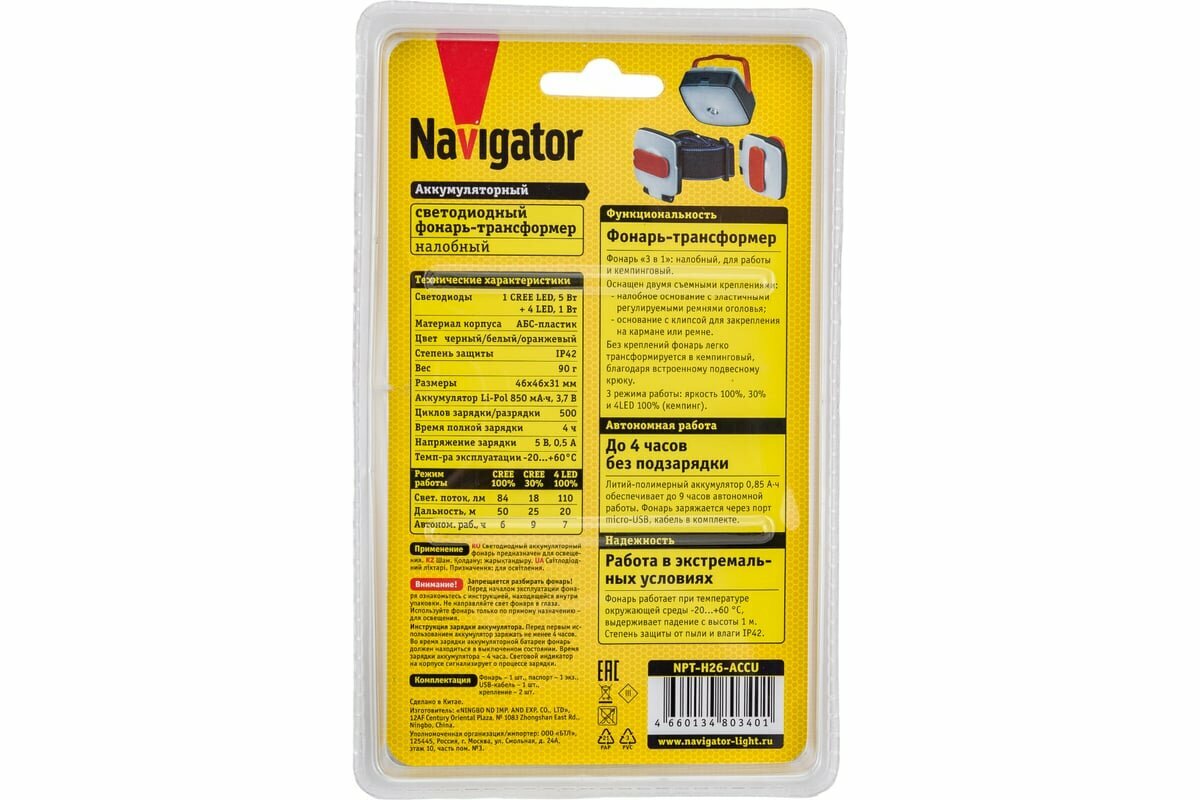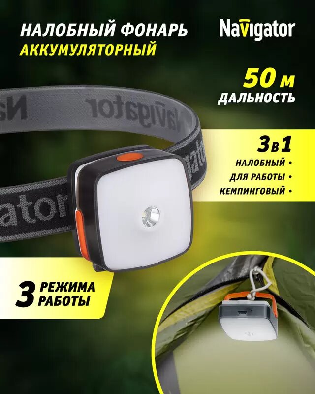 Фонарь налобный NAVIGATOR GROUP Navigator 80 340 NPT-H26-ACCU 1CREE LED 5 Вт+4LED 1 Вт,3 режима