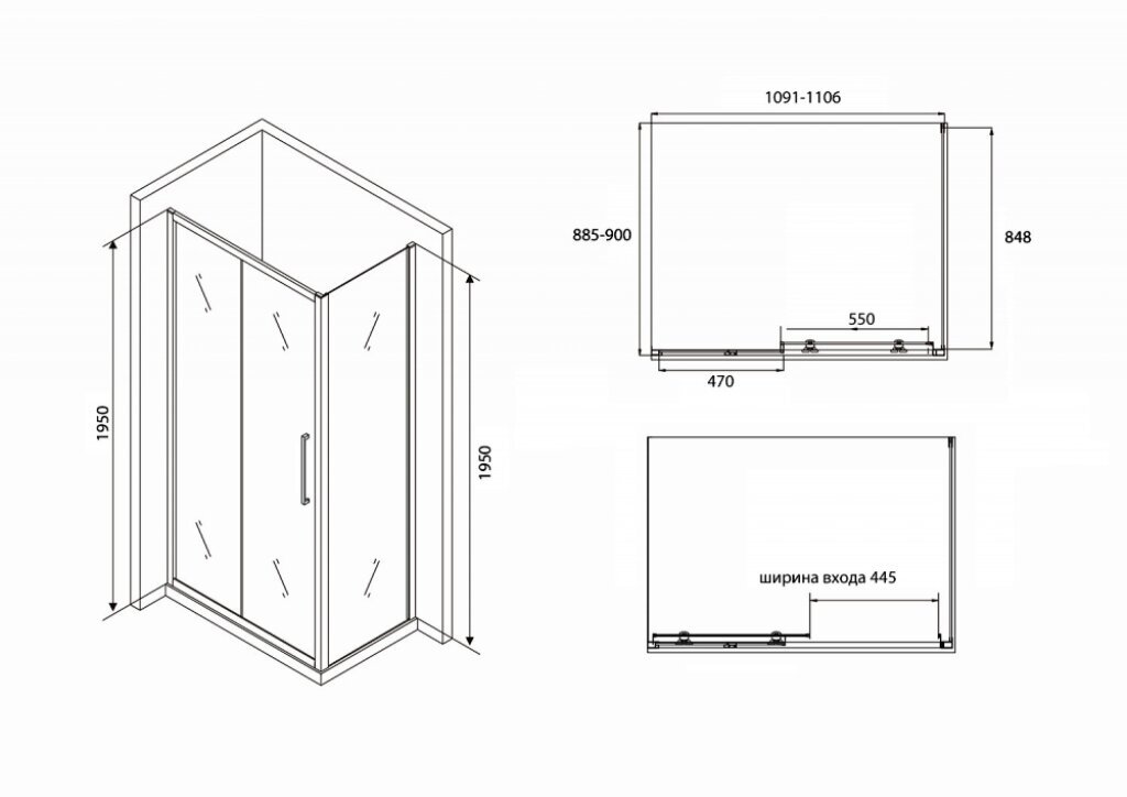 Душевой уголок Abber Schwarzer Diamant 1100х900 мм (габариты площадки) AG30110BH-S90B-S90B