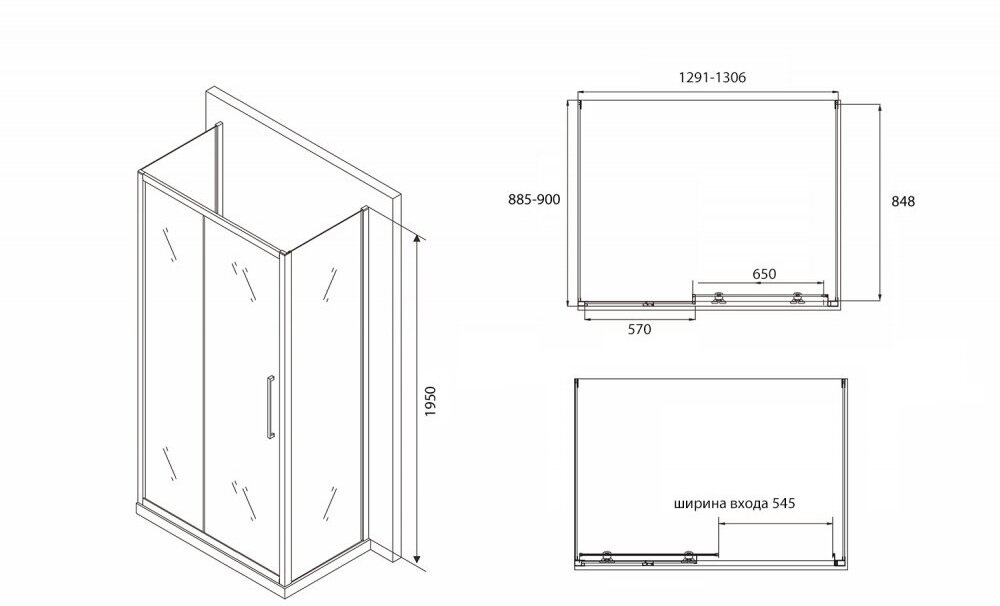Душевой уголок Abber Schwarzer Diamant 1300х900 мм (габариты площадки) AG30130BH-S90B-S90B интересное: