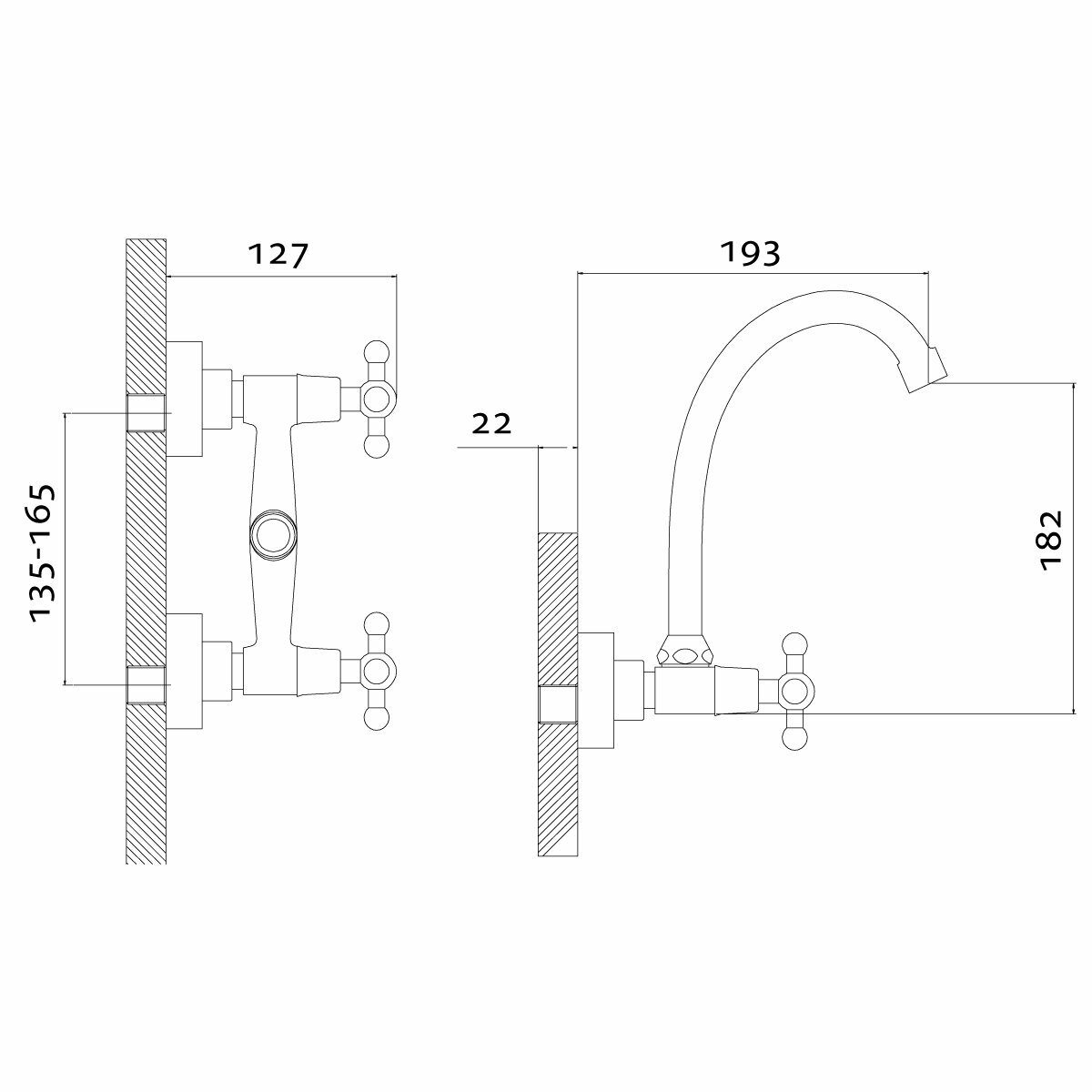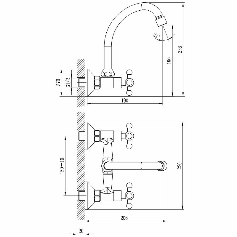Смеситель Rossinka G02-73 для кухни настенный, с верхним изливом, хром
