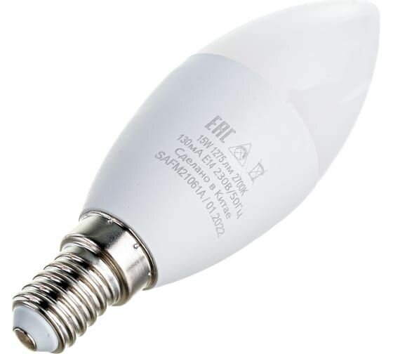 Лампа светодиодная SAFFIT SBC3715 арт. 55203, C37 (свеча) 15W E14 2700К (теплый) 230V