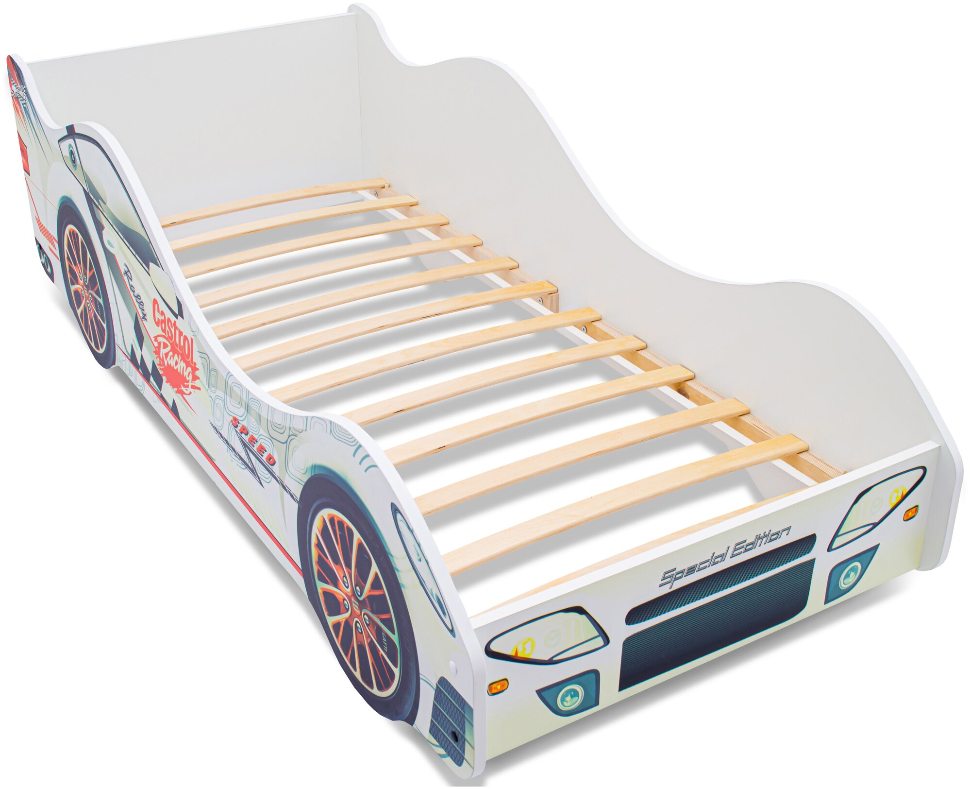 Детская кровать машина Тачка красная с ортопедическим основанием и бортиком