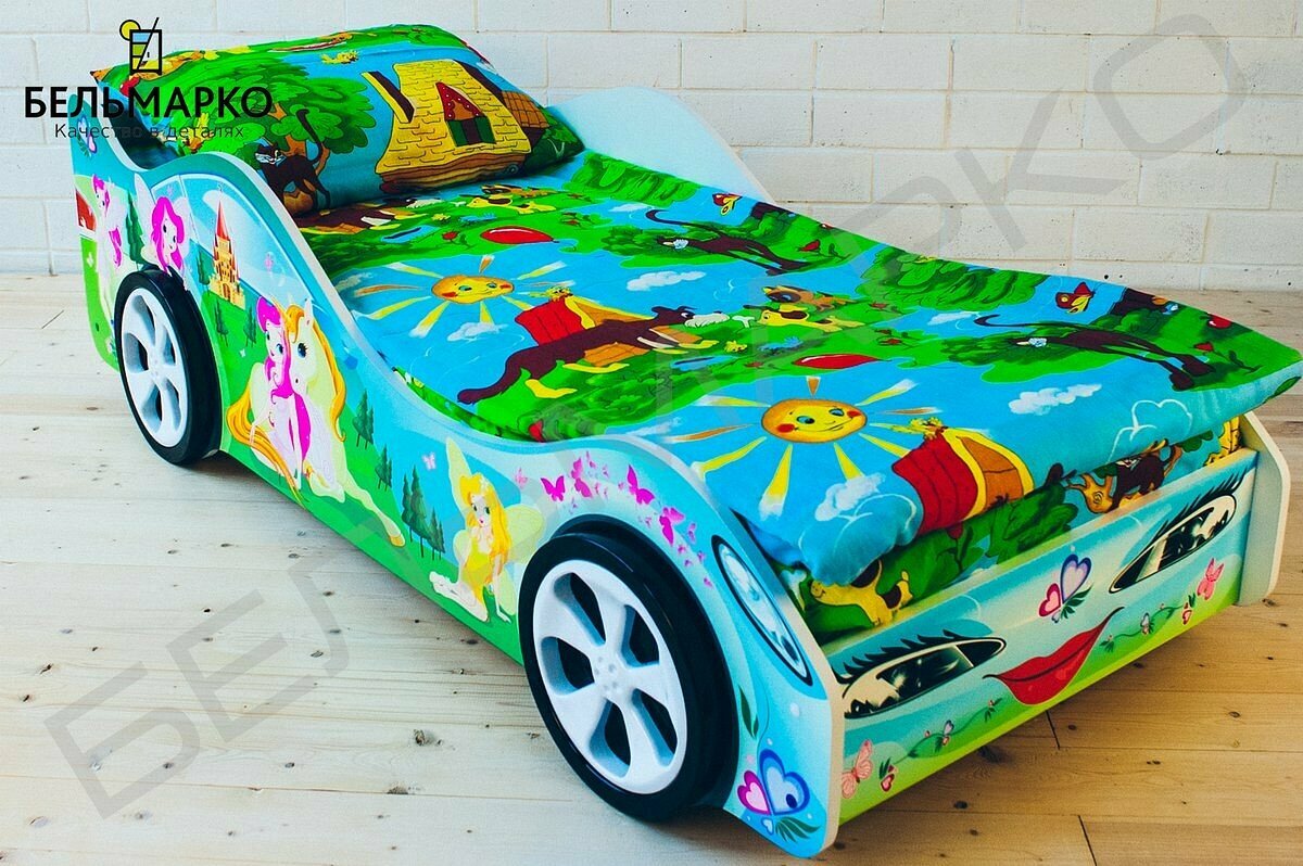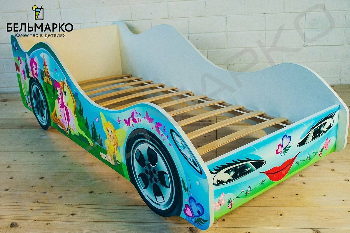 Детская кровать машина Бельмарко Феечкины сны с ортопедическим основанием и бортиком