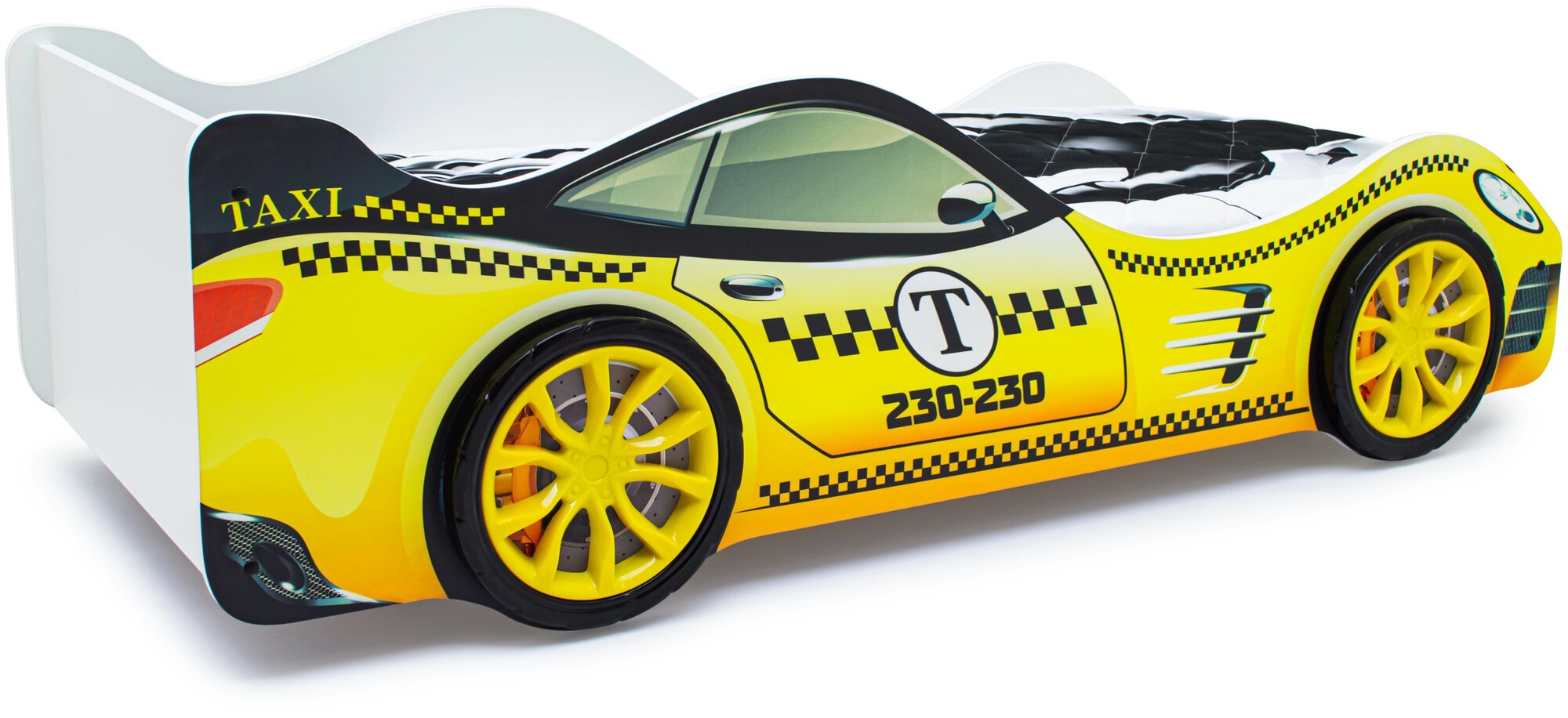 Детская кровать машина Такси с ортопедическим основанием и бортиком
